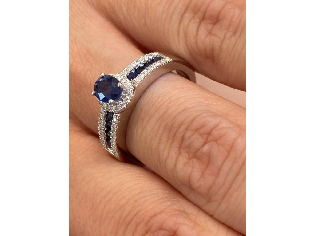 - Centrální safír: 4 x 5 mm ovál - 0,48 ct kvalita "AAA"