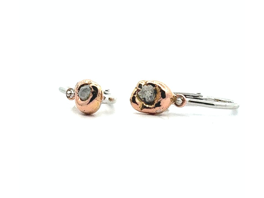 Dětské náušnice s raw diamanty v růžovém a bílém zlatě Dárková krabička a certifikát o pravosti raw diamantu zdarma