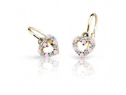 Dětské náušnice z bílého zlata srdíčka čiré a růžové zirkony CUTIE C2157 Dárková krabička zdarma