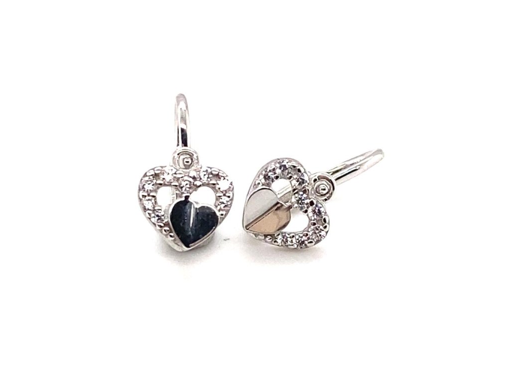 Dětské náušnice z bílého zlata srdíčka s čirými zirkony Dárková krabička zdarma