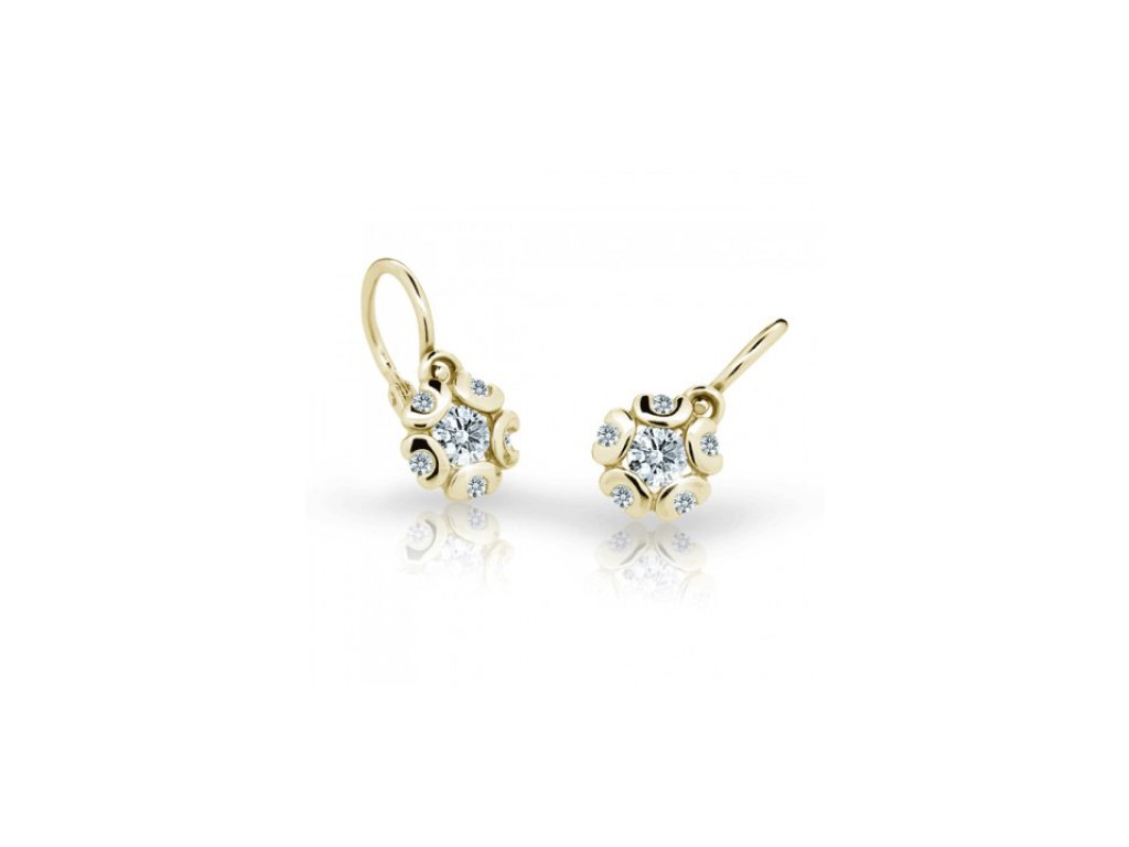 Dětské náušnice ze žlutého zlata s čirým zirkonem CUTIE C2178 Dárková krabička zdarma