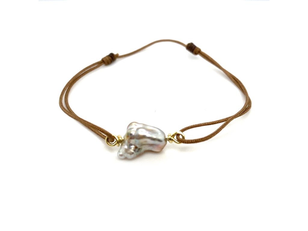 Keshi perla z FIJI provlečena žlutým zlatem na textilní šňůrku - náramek Dárková krabička i certifikát o pravosti perly zdarma