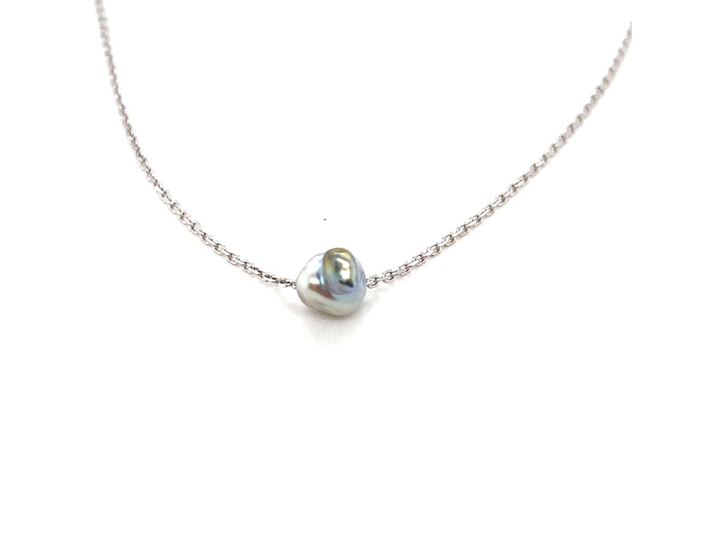 Keshi perla z Jižních moří bílo-modré barvy na řetízku z bílého zlata Dárková krabička i certifikát o pravosti perly zdarma