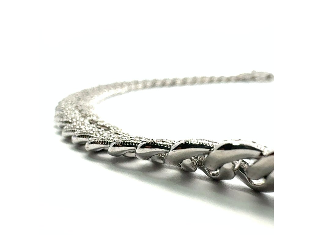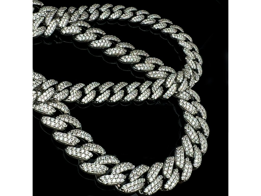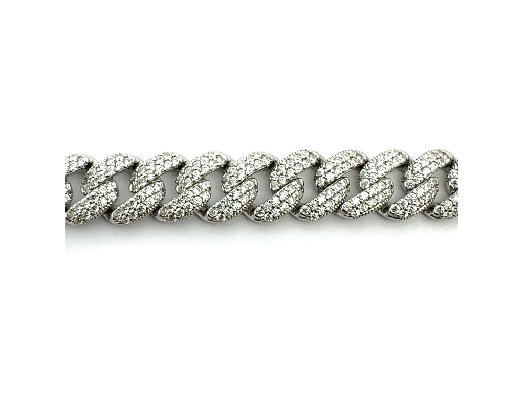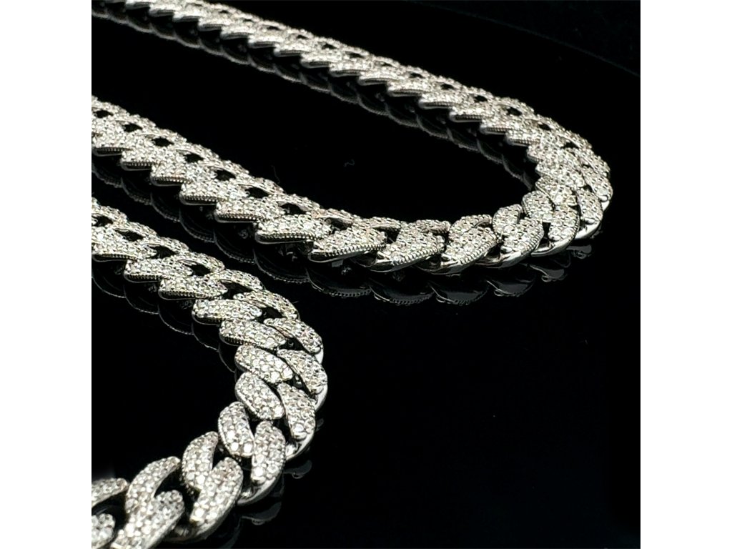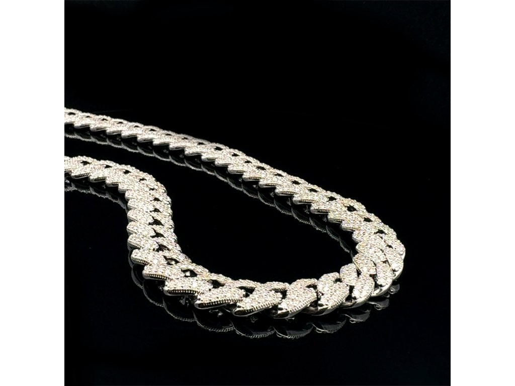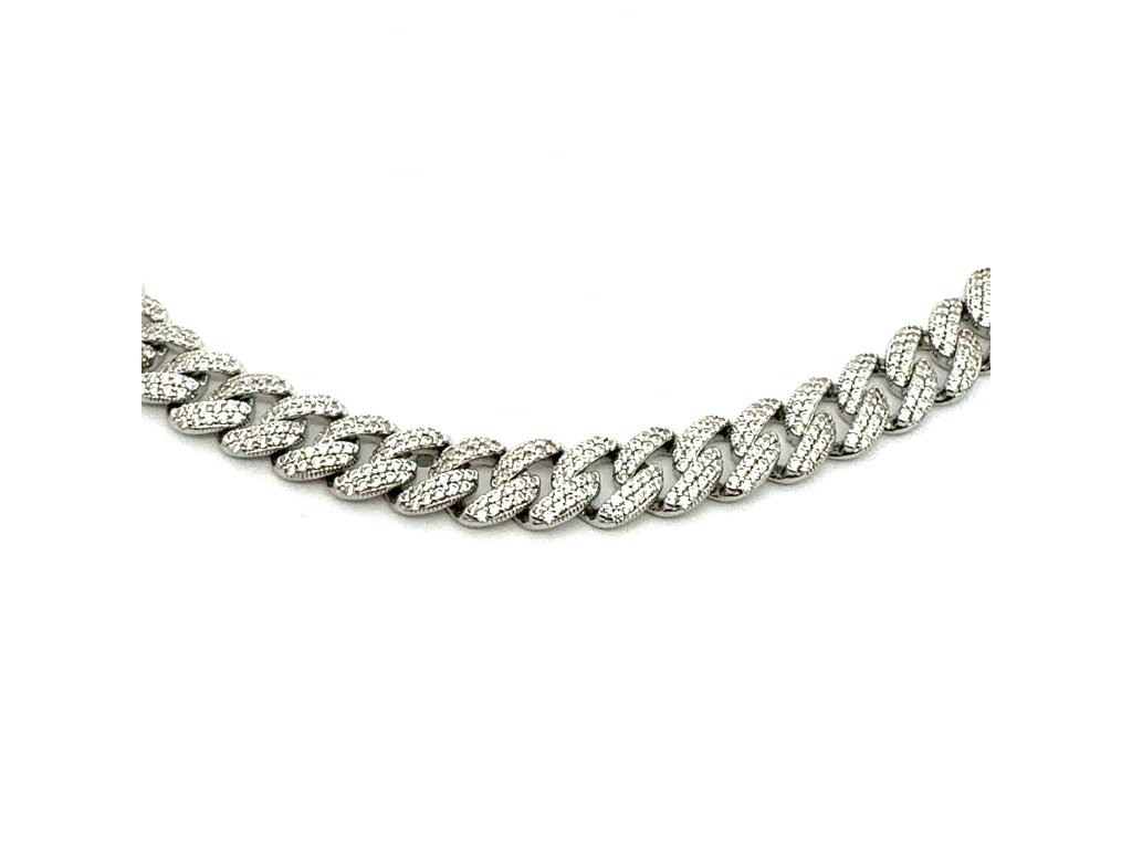 Tento luxusní náhrdelník ze stříbra 925/1000 ztělesňuje moderní pojetí elegance. Články s precizně vyváženými proporcemi tvoří harmonickou linii, která působí elegantně a zároveň moderně. Každý článek je po celé ploše precizně osazen drobnými zirkony, které zachycují světlo s intenzitou diamantového třpytu.