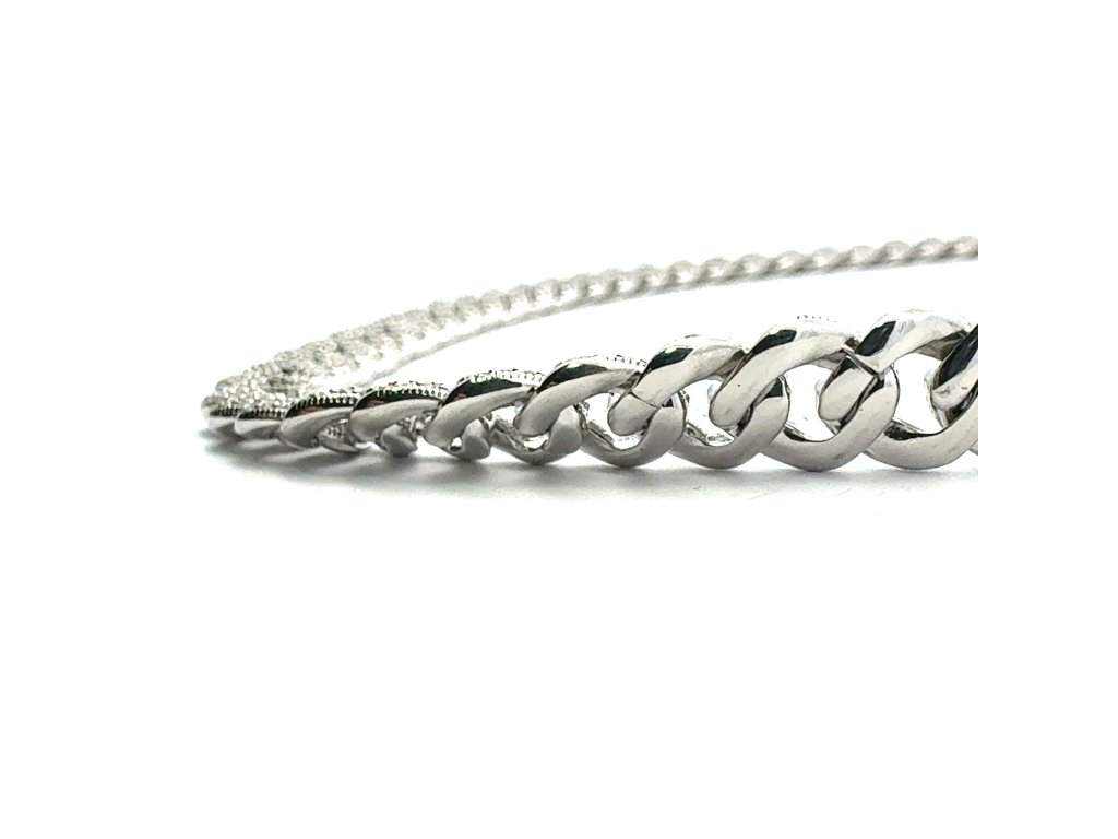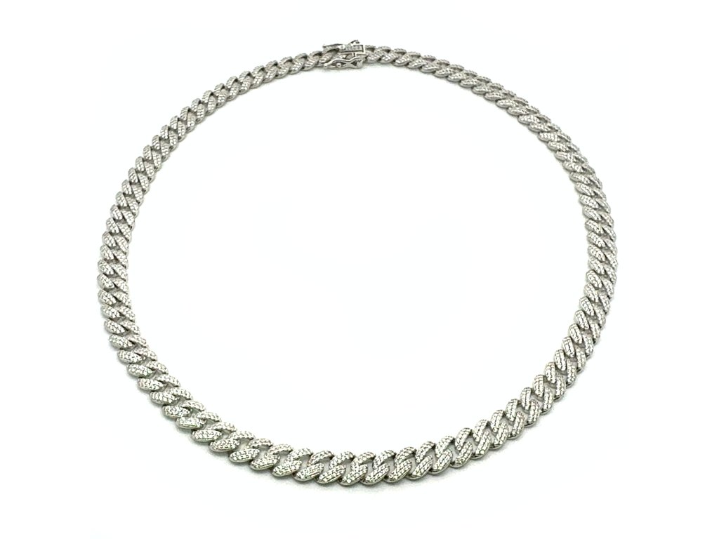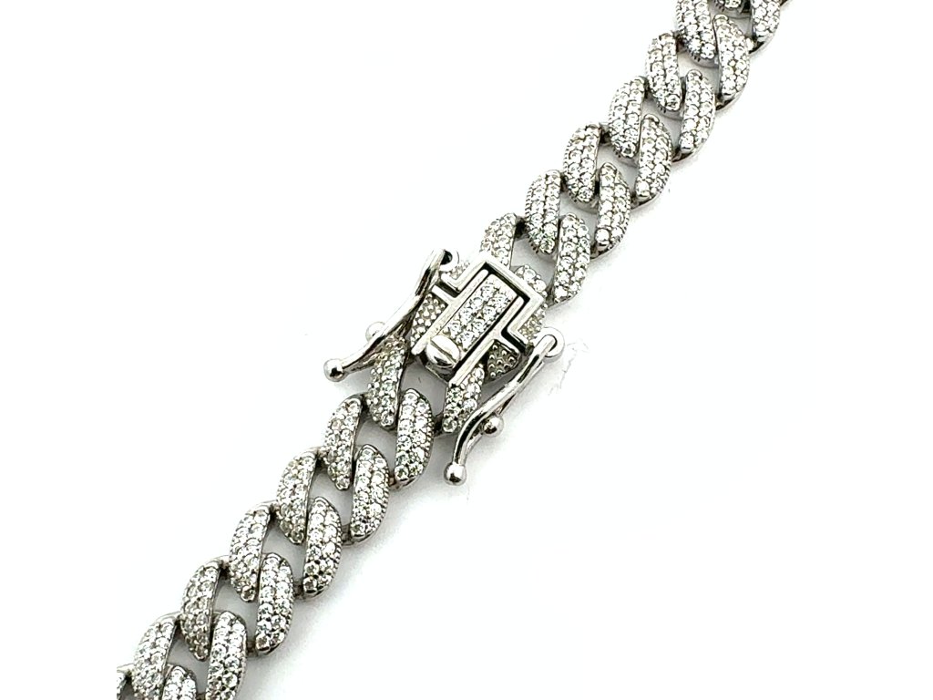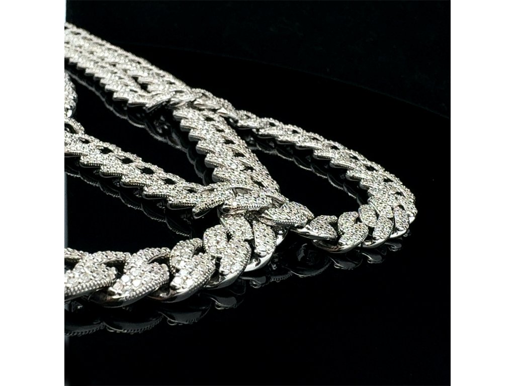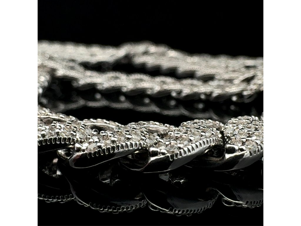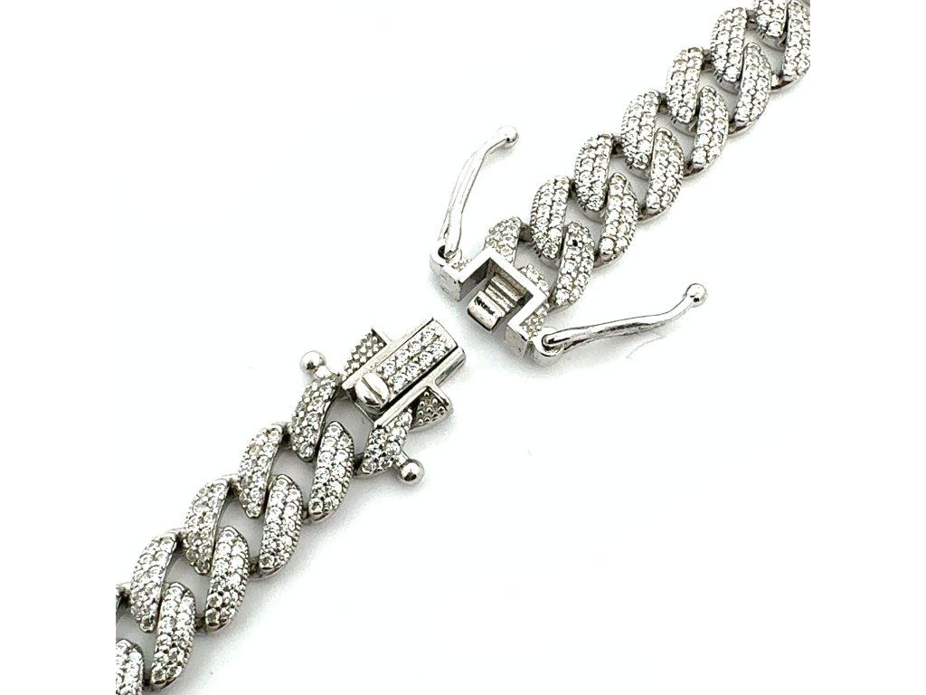 Tento luxusní náhrdelník ze stříbra 925/1000 ztělesňuje moderní pojetí elegance. Články s precizně vyváženými proporcemi tvoří harmonickou linii, která působí elegantně a zároveň moderně. Každý článek je po celé ploše precizně osazen drobnými zirkony, které zachycují světlo s intenzitou diamantového třpytu.