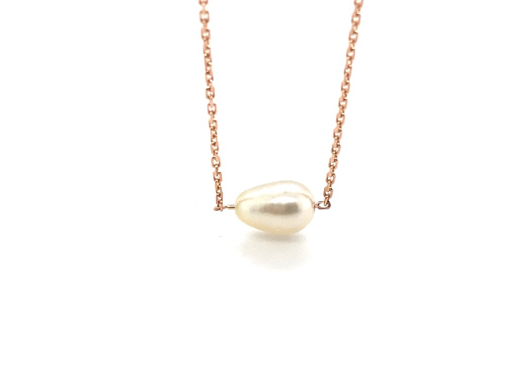 Mořská perla keshi bílé barvy na řetízku z růžového zlata Dárková krabička i certifikát o pravosti perly zdarma