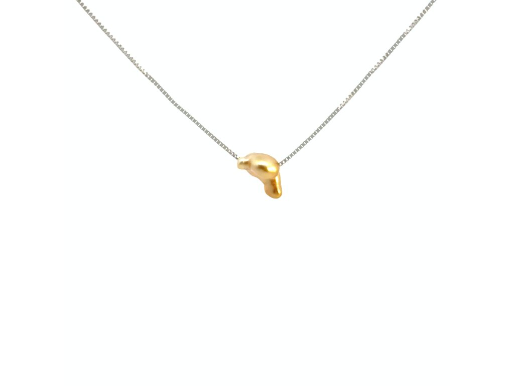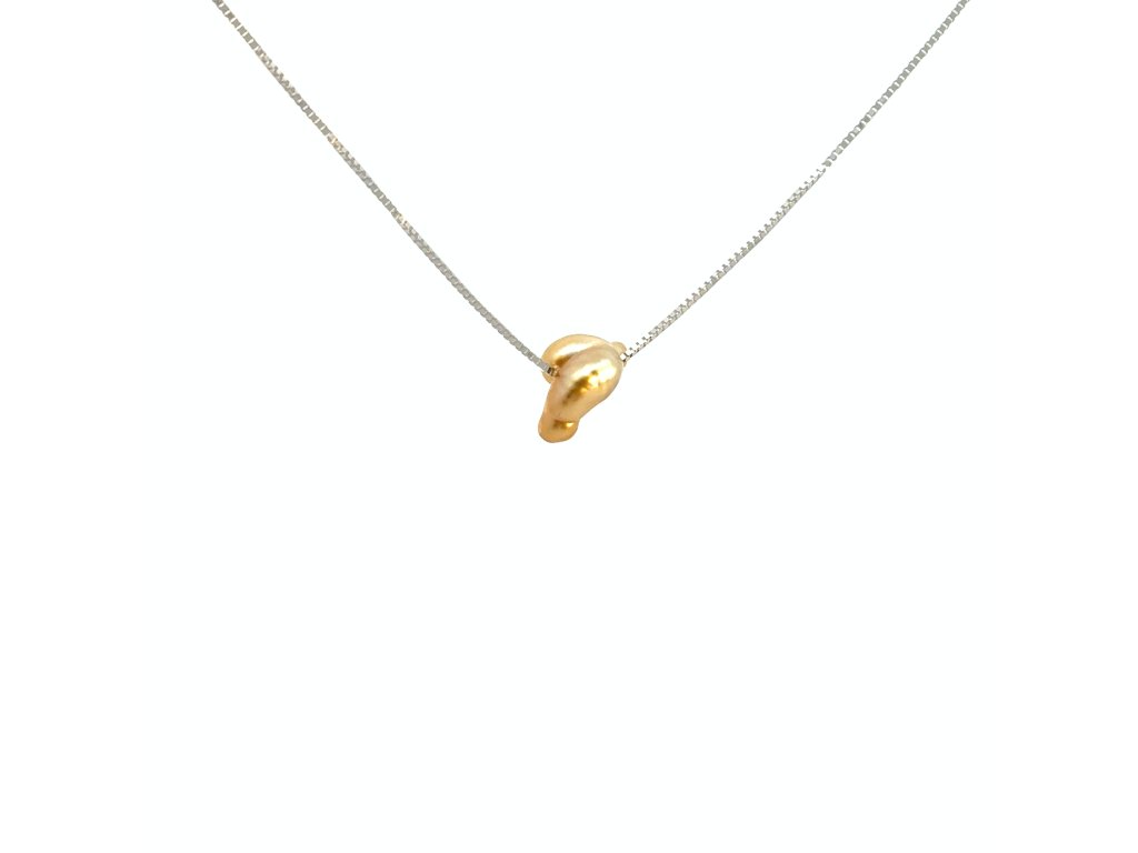 Velmi vzácná zlatá keshi perla na jemném řetízku - přírodní elegance v nejčistší podobě