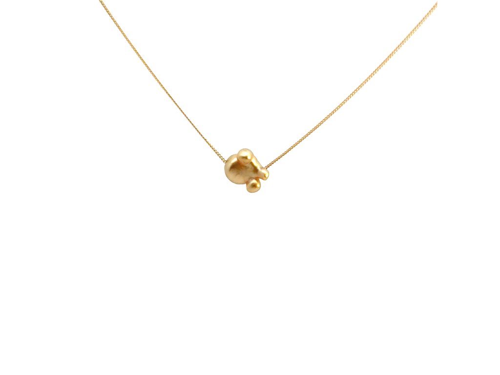 Jedinečný odstín "liquid gold" nechává perlu jemně zářit na pokožce a vytváří pocit lehkého, až éterického luxusu. Je zavěšená na elegantním řetízku ze žlutého zlata, který dodává celému šperku harmonii a vytříbené charakter.