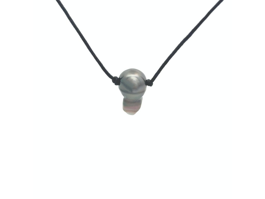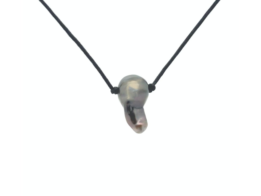Mořská perla Tahiti na krk na textilní šňůrce Dárková krabička a certifikát o pravosti perlyl zdarma
