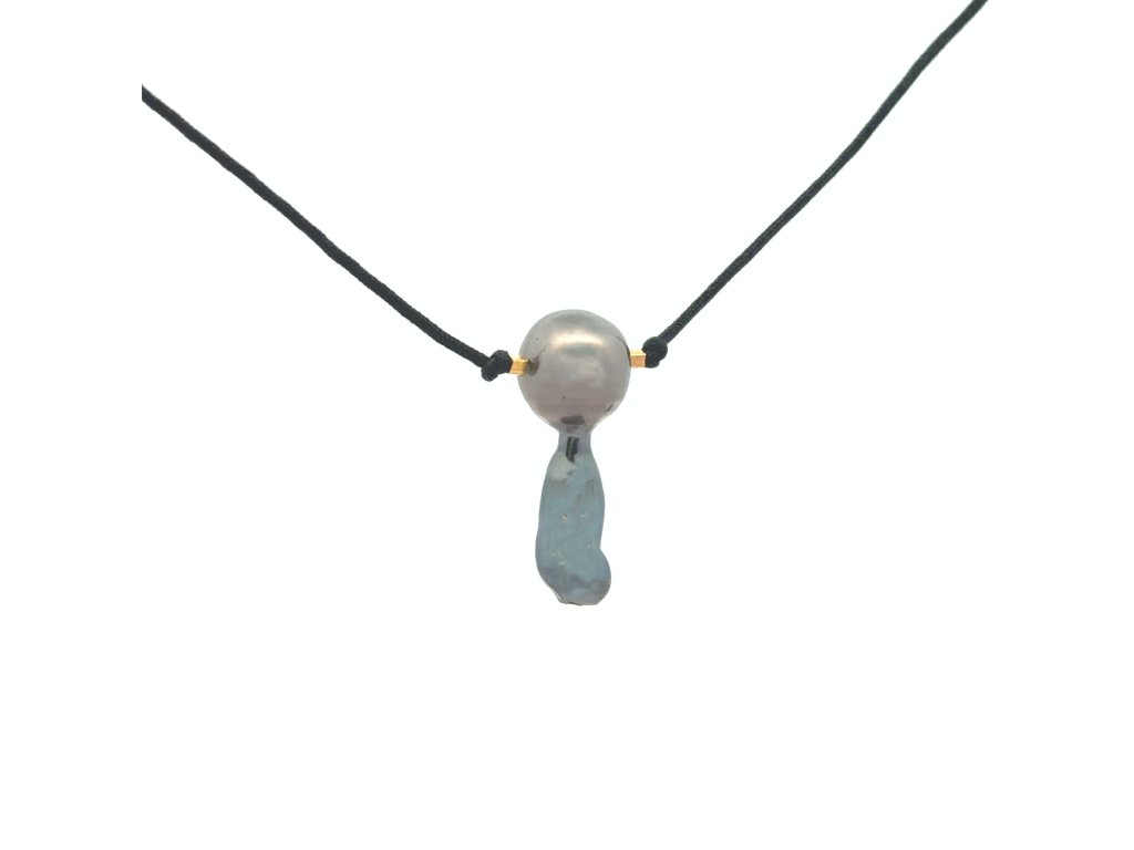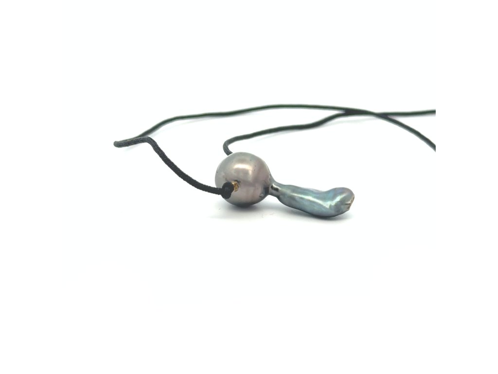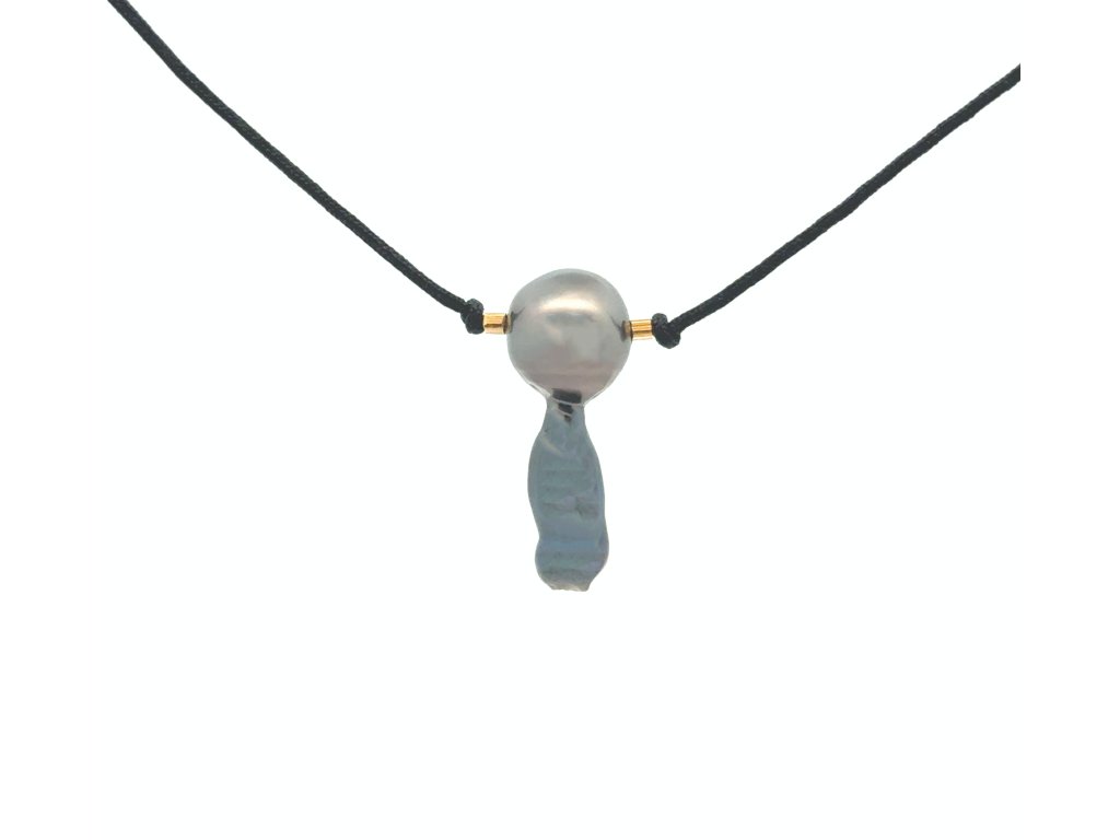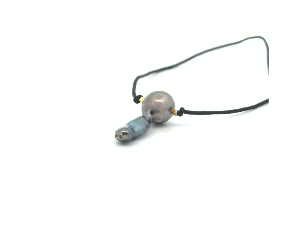 Mořská perla Tahiti s ryzím zlatem - na krk na textilní šňůrce Dárková krabička a certifikát o pravosti perlyl zdarma