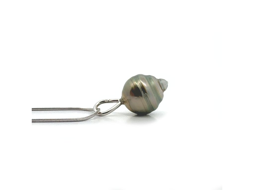Očko z bílého zlata jen jemně objímá vrch část perly a nechává tento klenot volně dýchat. Řetízek z bílého zlata ji doplňuje, ale nepřebírá pozornost. Aby si udržel tvar i pevnost, není vhodné s ním spát. Pokud chcete jiný typ či styl, lze jej snadno vyměnit - rádi vám doporučíme jiný styl.