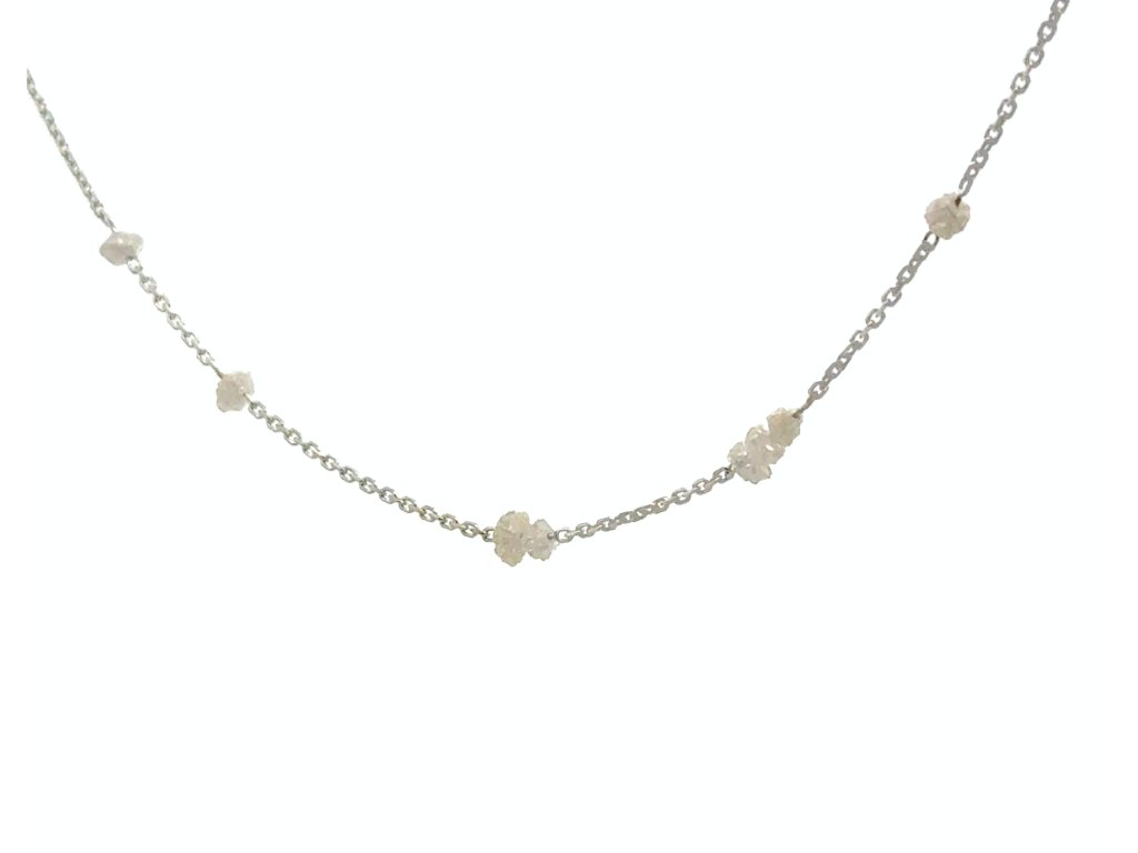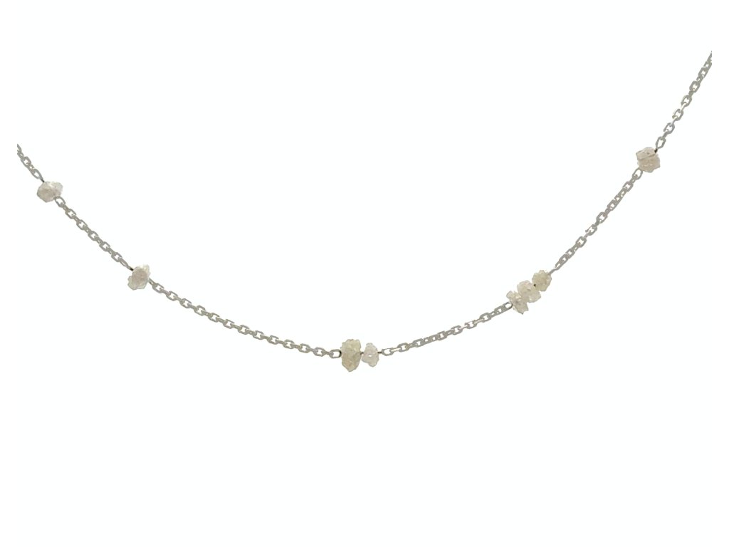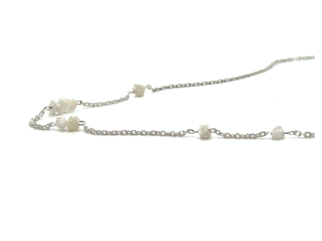 Náhrdelník s raw diamanty na řetízku z bílého zlata Dárková krabička a certifikát pravosti diamantů zdarma