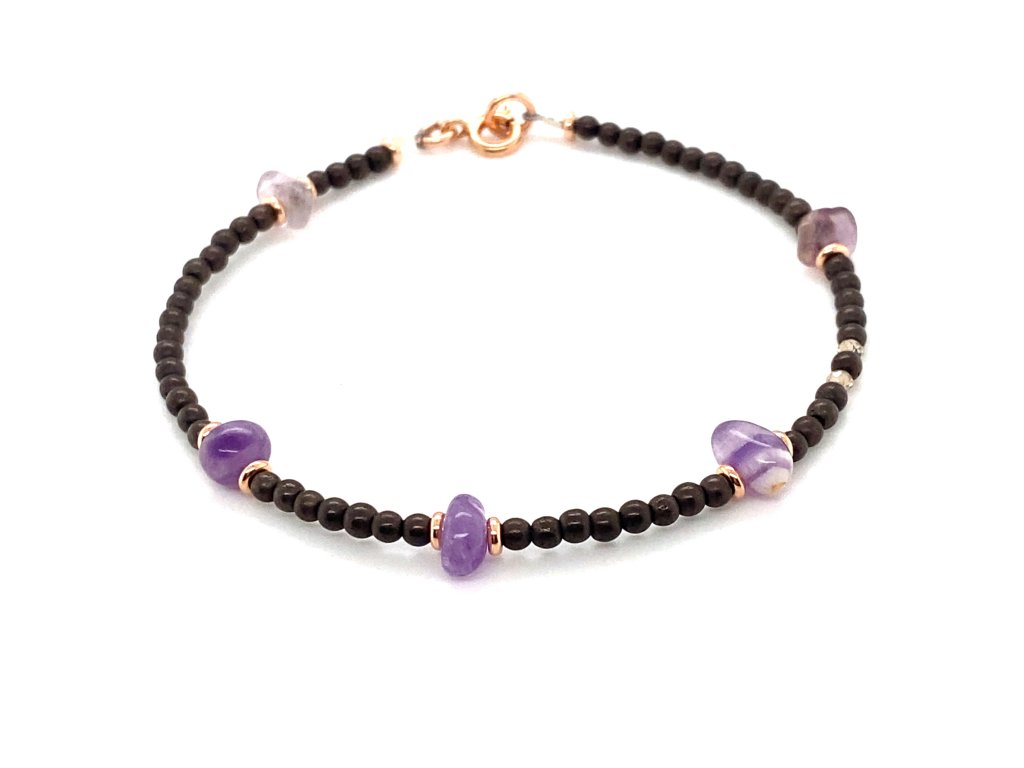 Náramek hematit a ametyst Dárková krabička zdarma