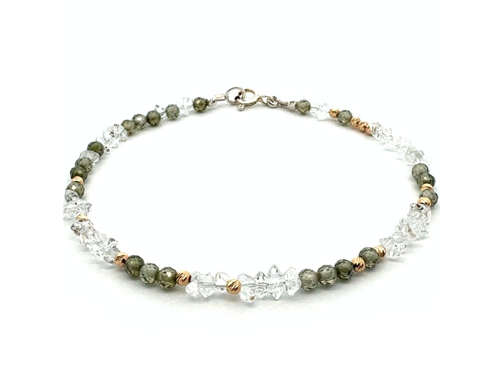 Náramek - herkimery, zirkony a zlato Dárková krabička a certifikát pravosti kamenů zdarma