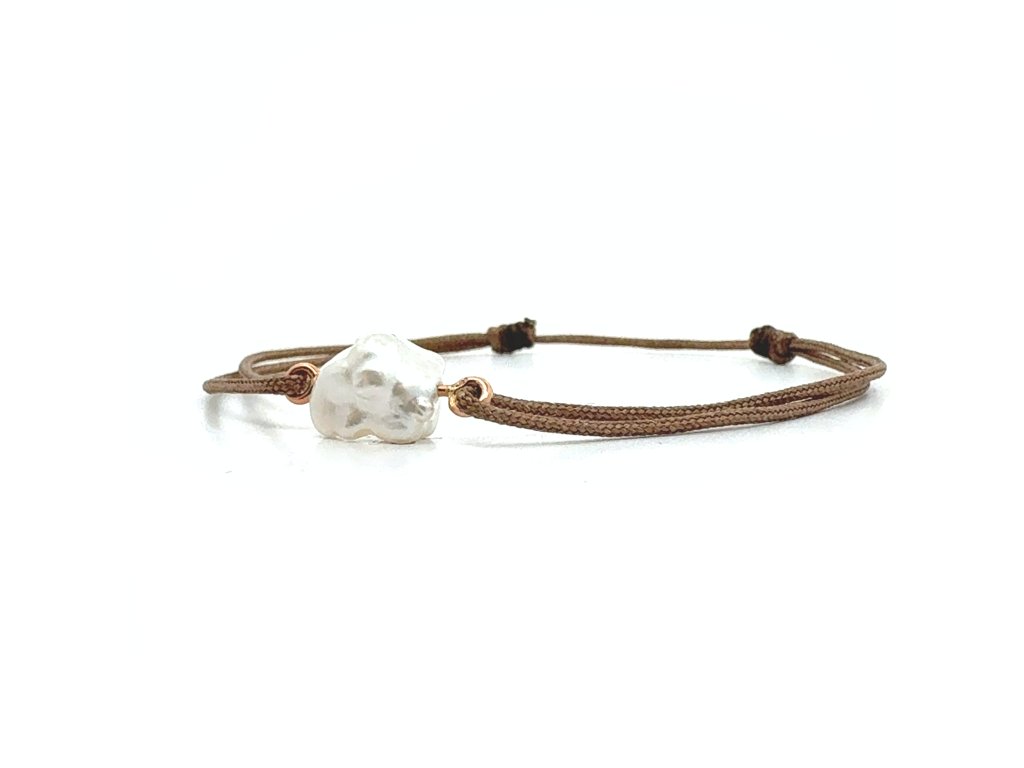 Náramek keshi perla z jižních moří na textilní šňůrce Dárková krabička i certifikát o pravosti perly zdarma