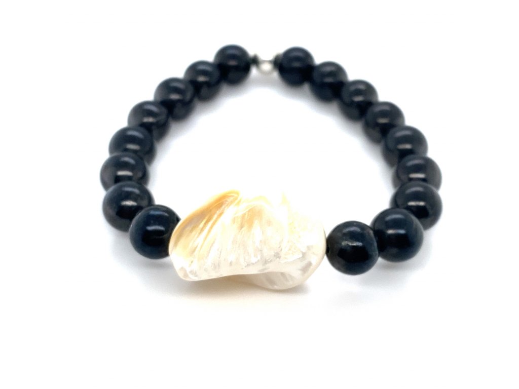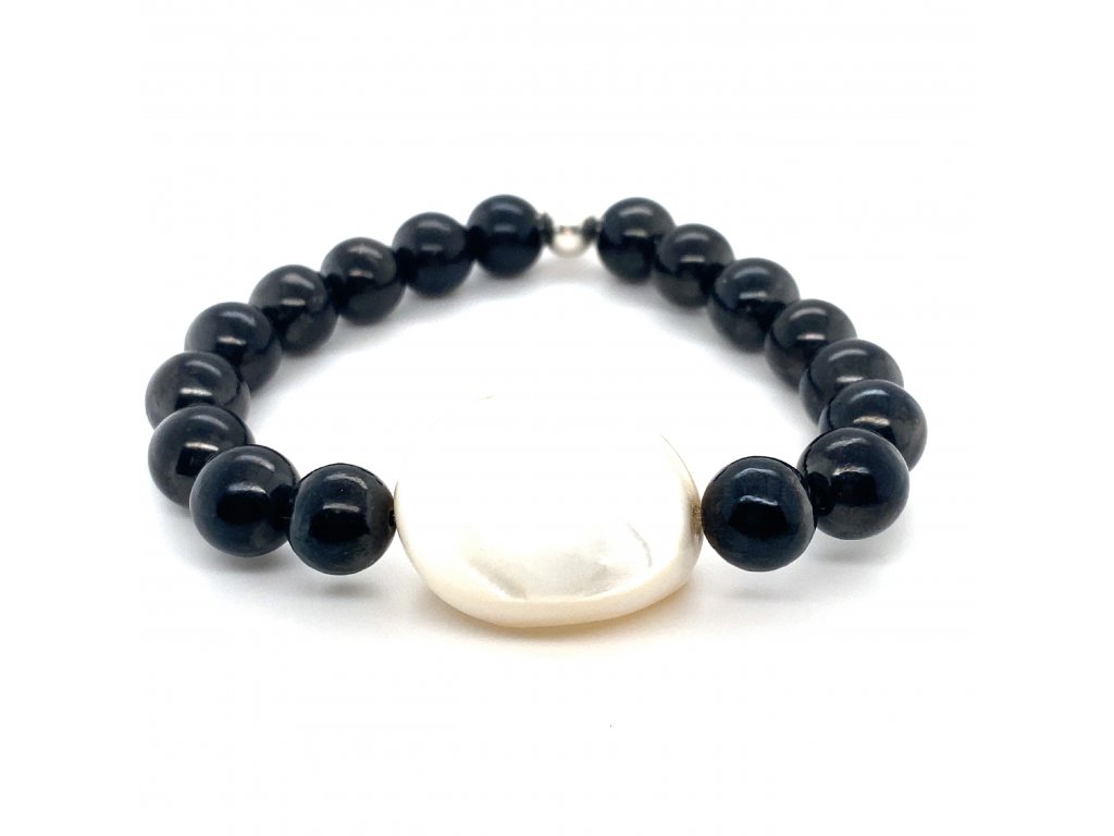 Náramek se šungitem a mateční mušlí Dárková krabička a certifikát pravosti zdarma