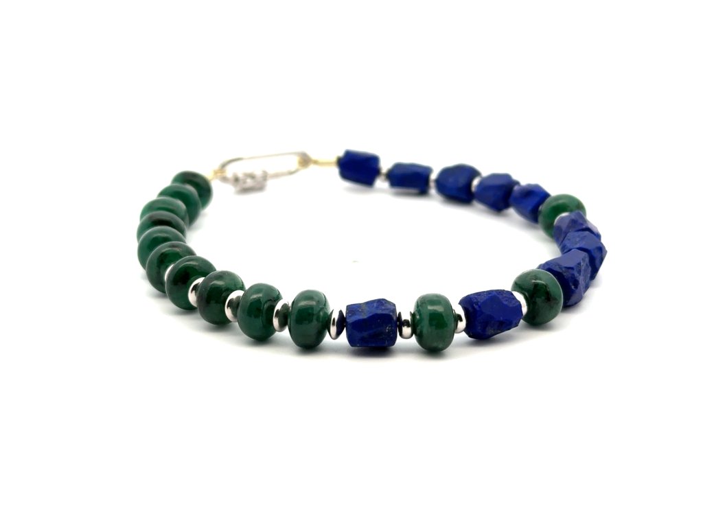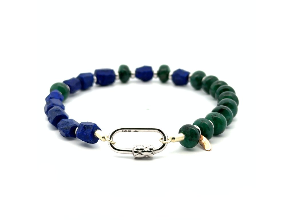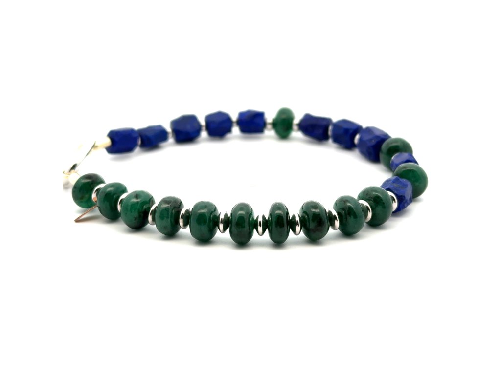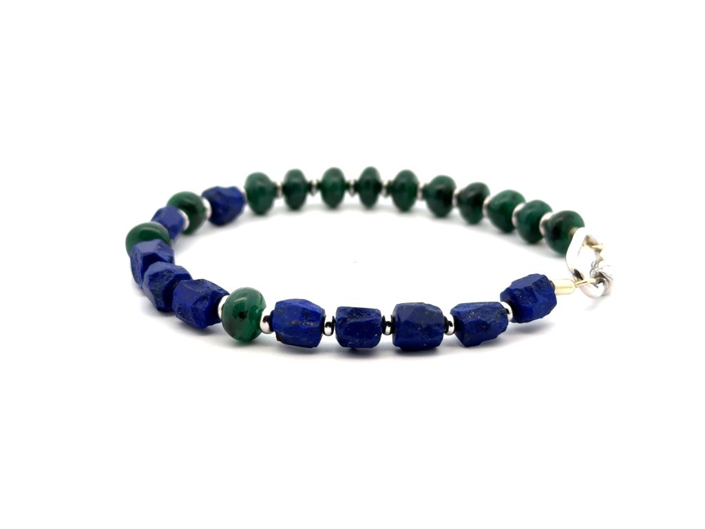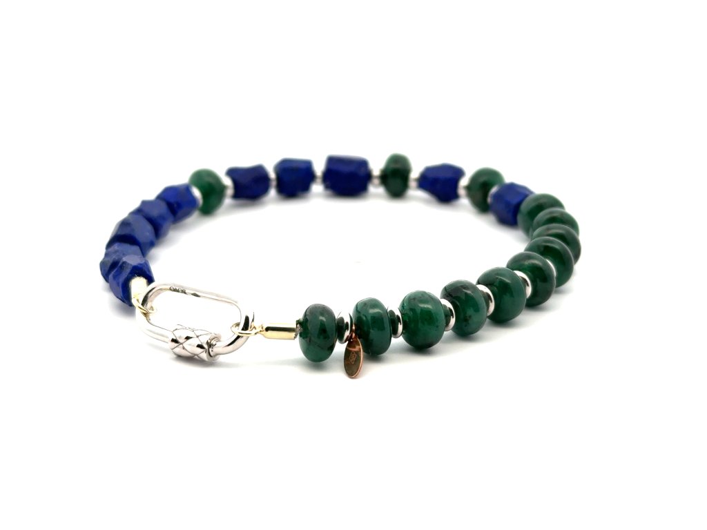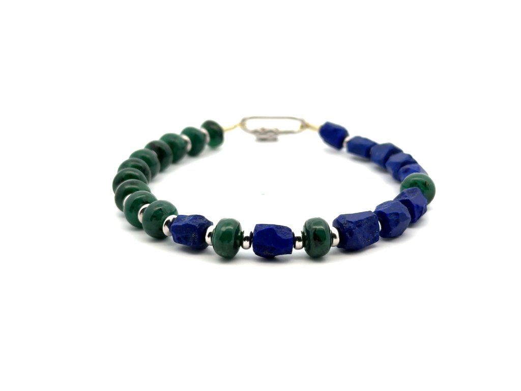 Náramek ze smaragdů z Kolumbie a lapis lazuli z Afghánistánu - harmonie vzácných drahokamů.