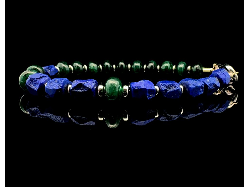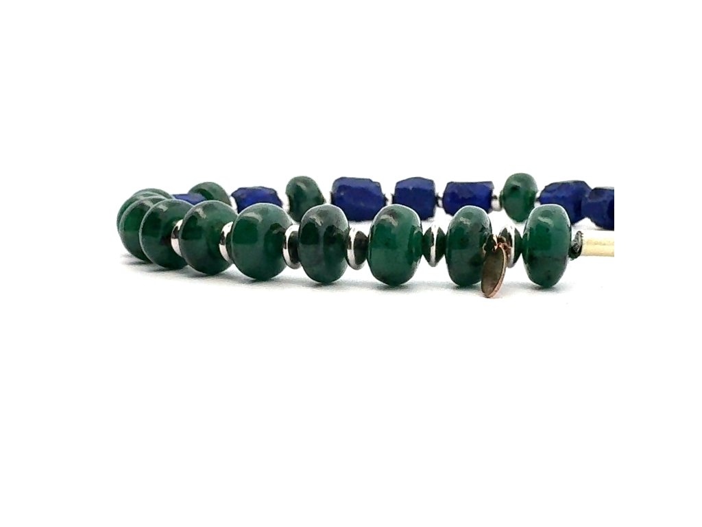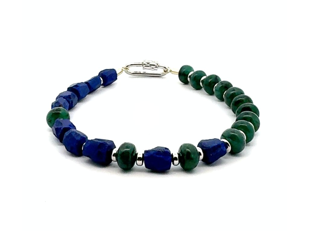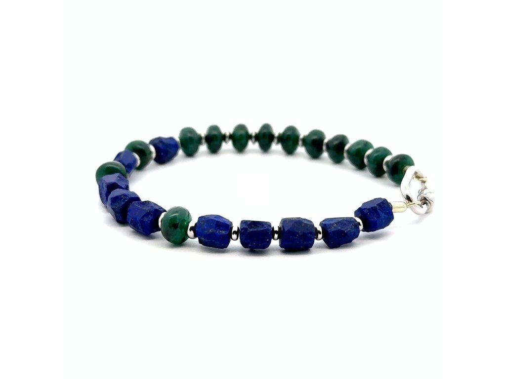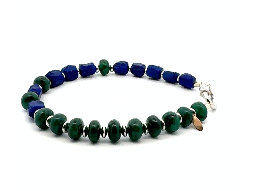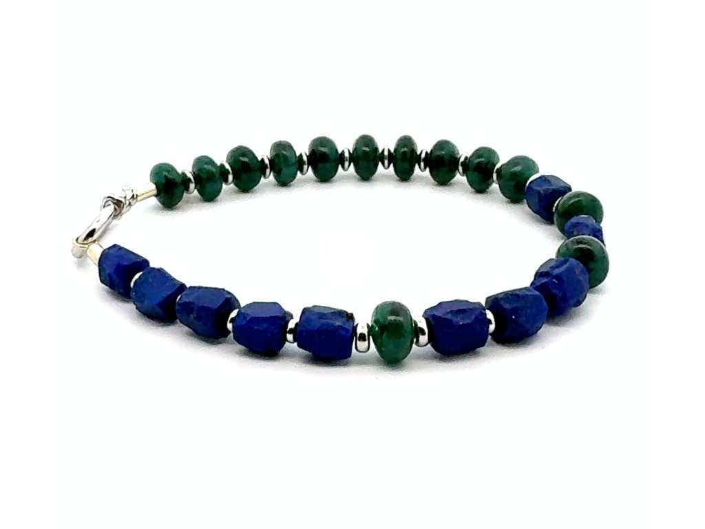 Náramek ze smaragdů z Kolumbie a lapis lazuli z Afghánistánu - harmonie vzácných drahokamů.