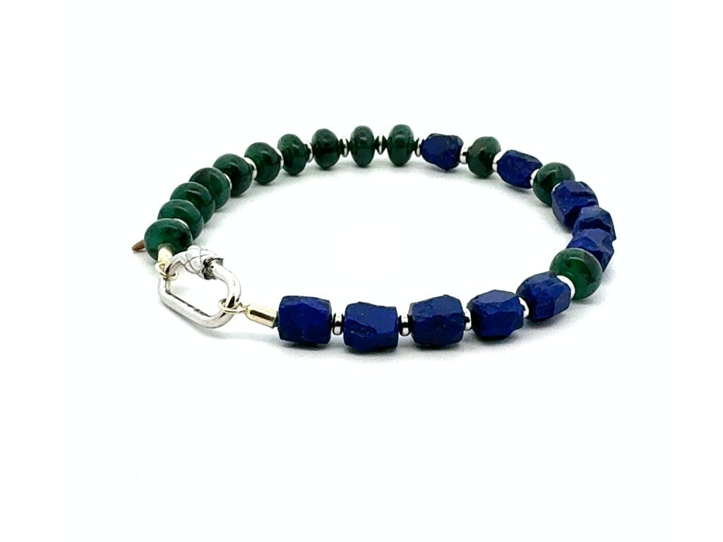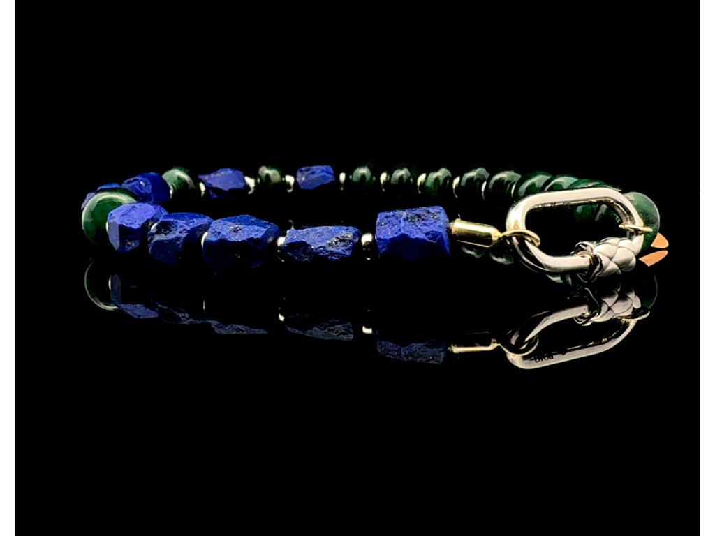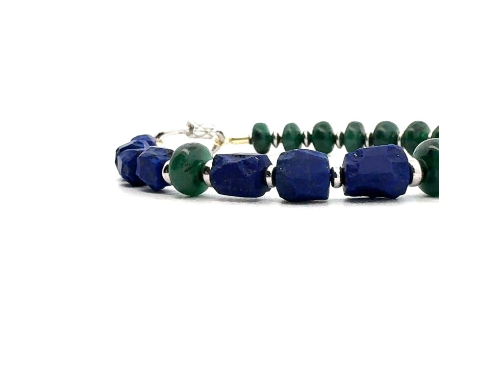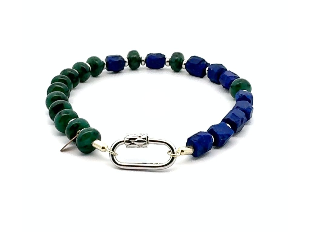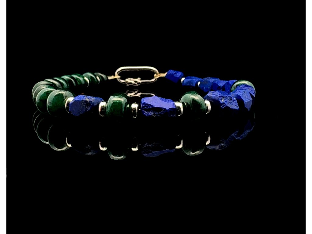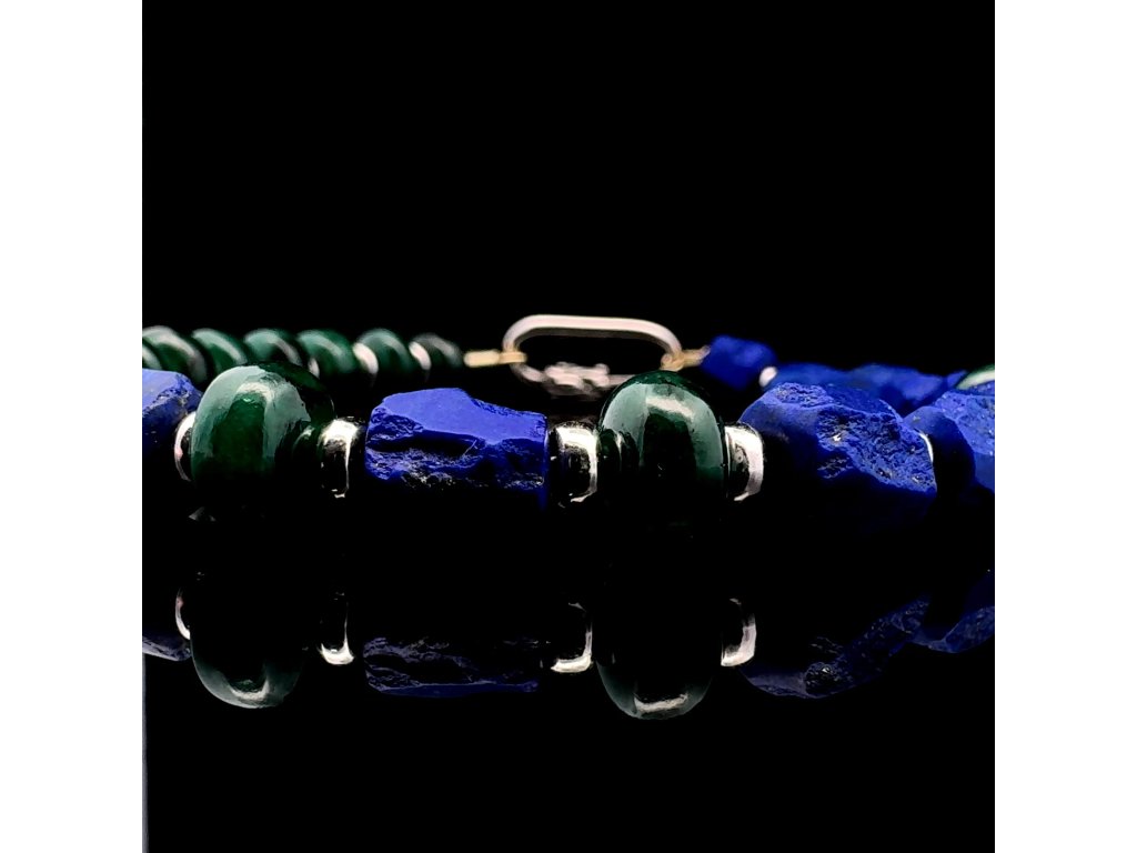 Náramek ze smaragdů z Kolumbie a lapis lazuli z Afghánistánu - harmonie vzácných drahokamů.