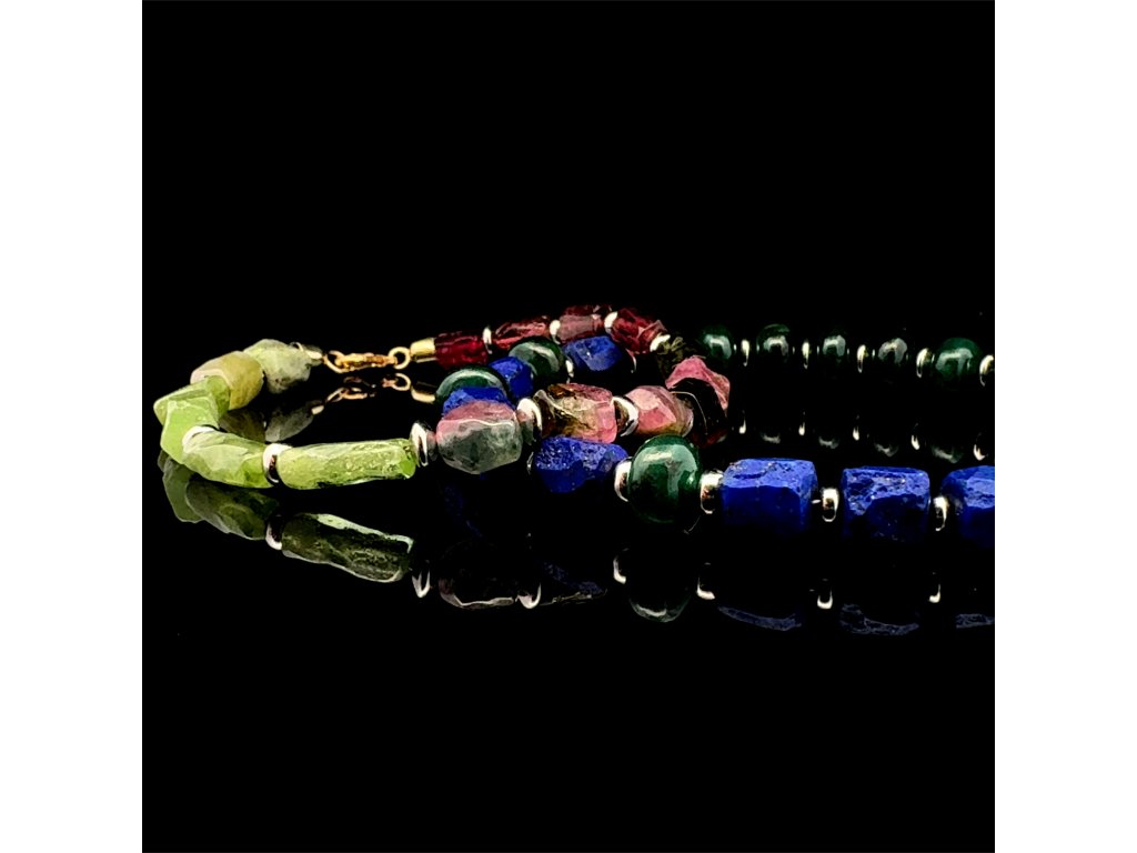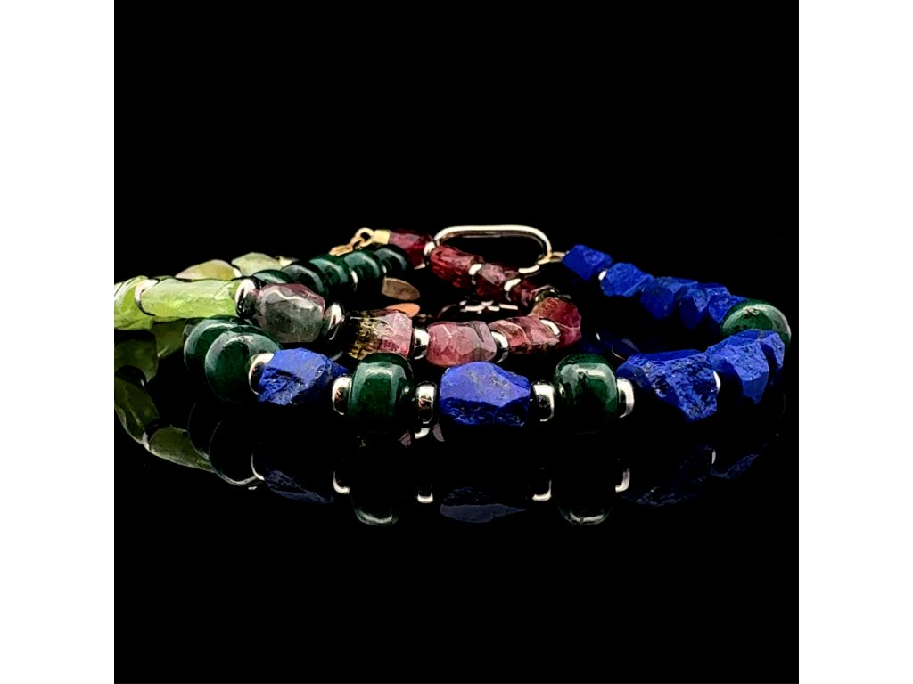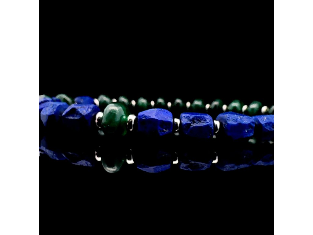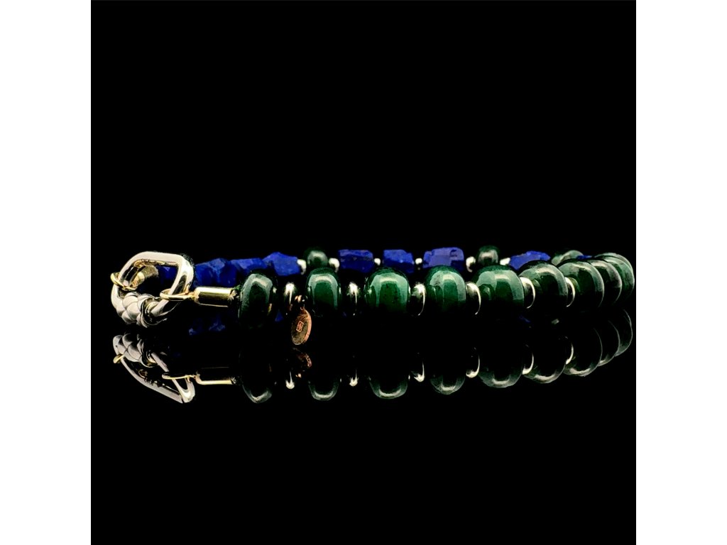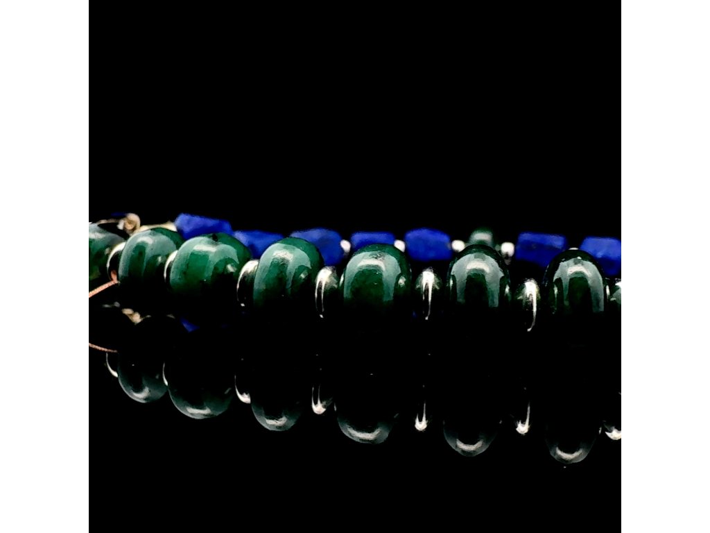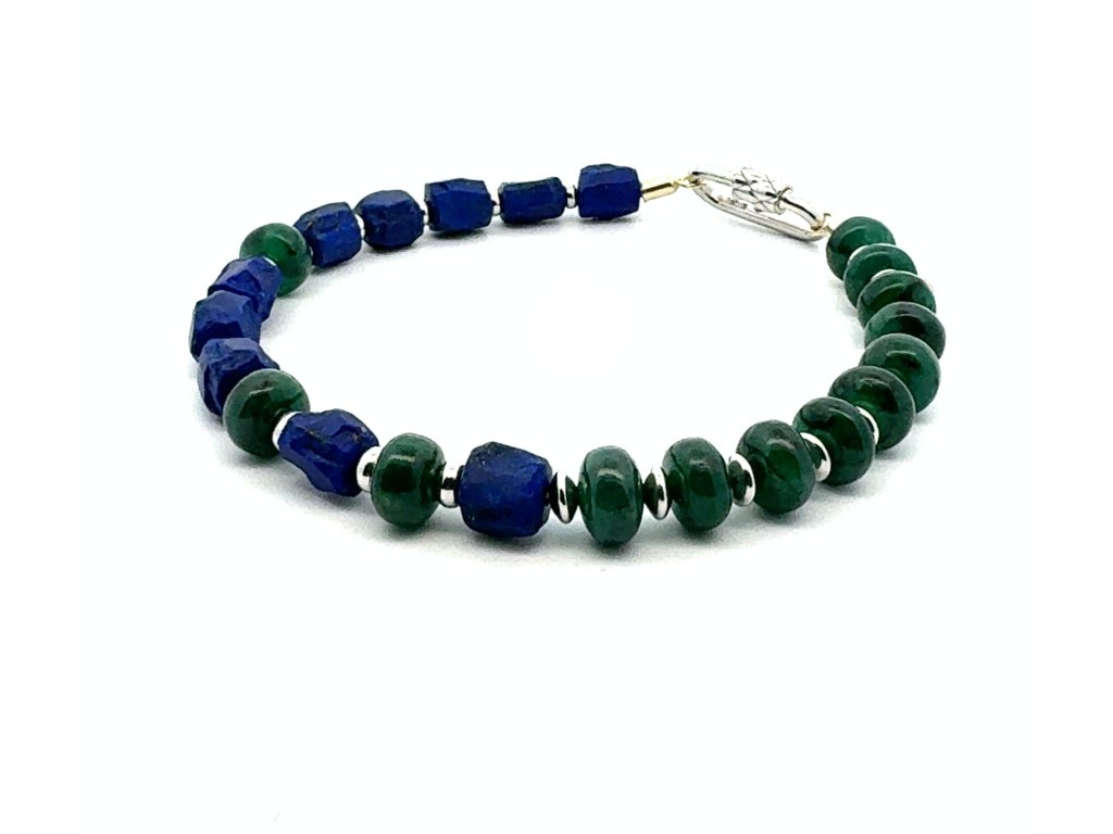 Náramek ze smaragdů z Kolumbie a lapis lazuli z Afghánistánu - harmonie vzácných drahokamů.