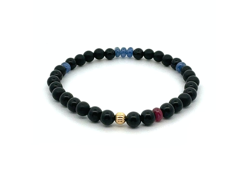 Náramek šungit, safír, rubín a zlato Dárková krabička i certifikát o pravosti kamenů zdarma