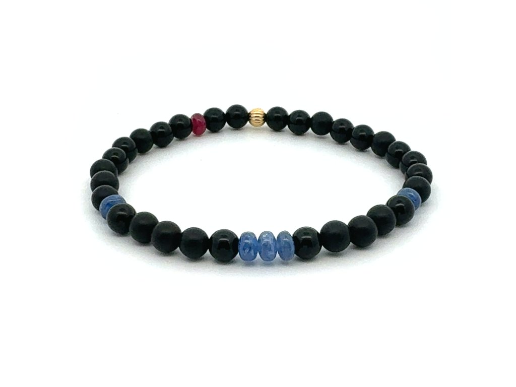 Náramek šungit, safír, rubín a zlato Dárková krabička i certifikát o pravosti kamenů zdarma