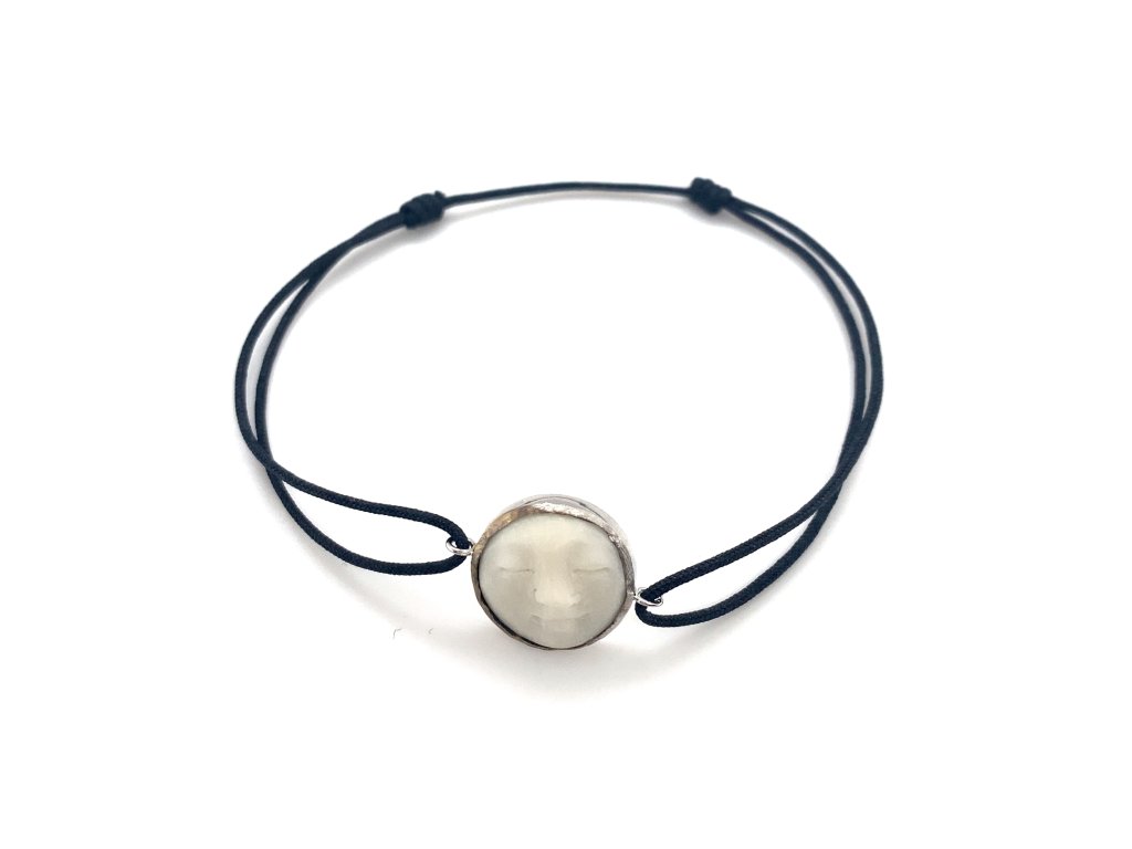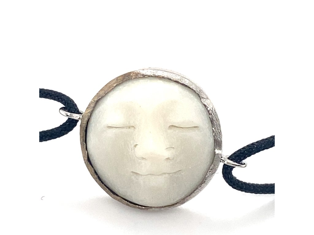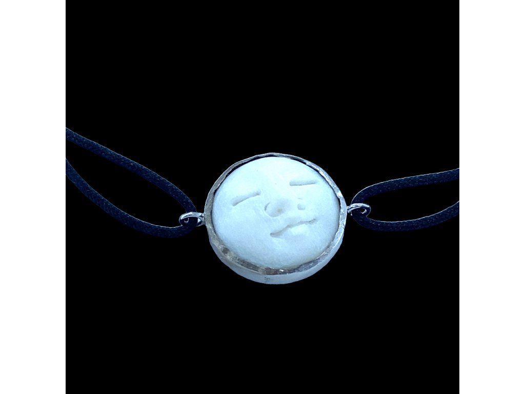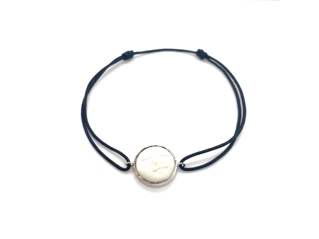 Náramek textilní šňůrka "tichá tvář" v bílém zlatě a Bone NAPK77 Dárková krabička zdarma