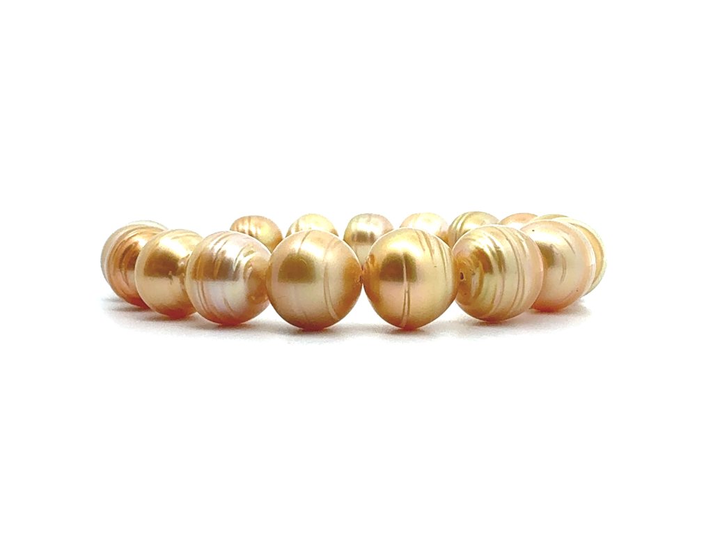 Zlaté perly z Filipín - říká se mu často 24k gold of the ocean - s velikostí 10,4 - 10,7 mm patří mezi nejvzácnější poklady moře. Jejich přirozený sytý odstín zlata patří k těm nejvzácnějším na světě. Je to barva, kterou moře daruje jen výjimečně - hluboká, sytá, s teplým odleskem pravého zlata. Vzniká jen tehdy, když je moře, čas a perlorodka v dokonalé harmonii. Žádné jiné místo na světě nedává perlám tak bohatý tón a tak překrásný lesk. Čím je zlatá barva perly intenzivnější, tím je perla vzácnější, ale i dražší. Právě máte možnost mít perly s intenzivně zlatou barvou.