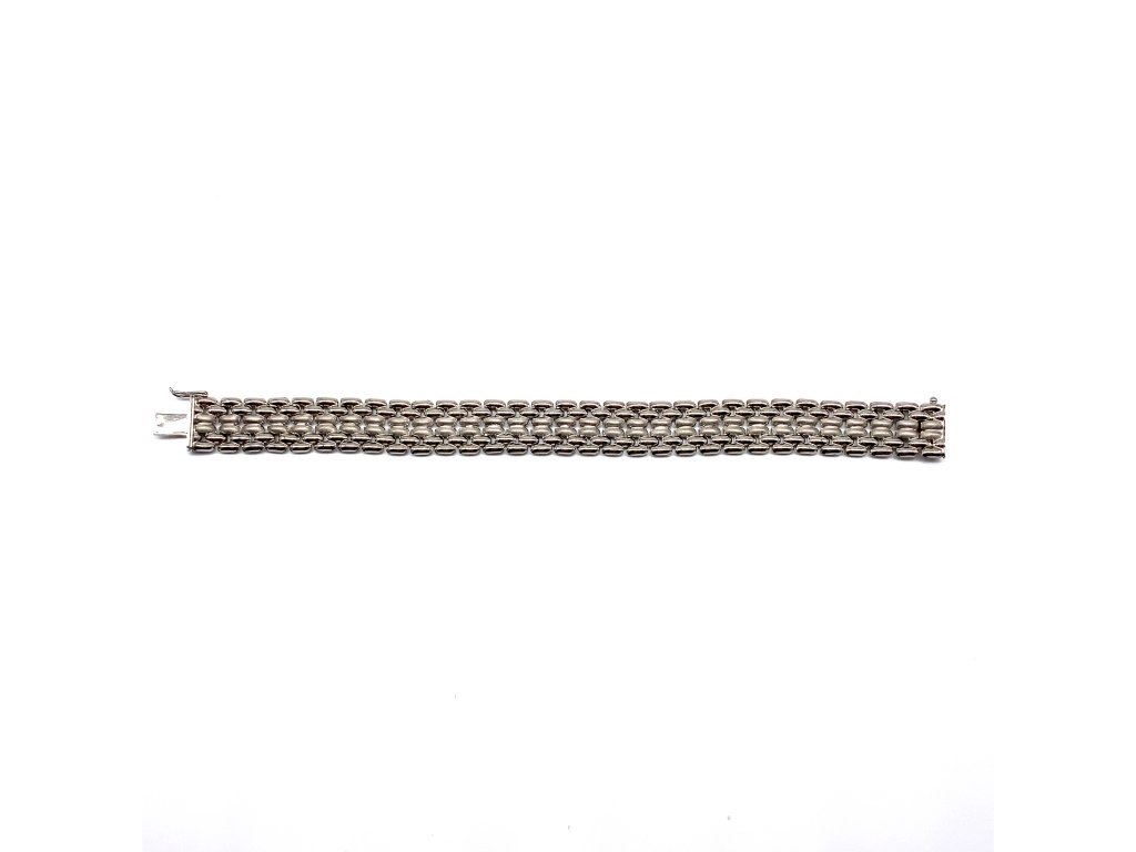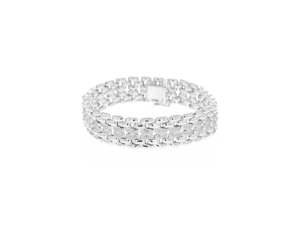 Náramek z bílého zlata není jen ozdobou - je to výraz prestiže a vkusu. Bílé zlato v dokonale propracované článkové struktuře vytváří rytmus světla a stínu, kde se mat a vysoký lesk střídají jako sofistikovaná hra kontrastů. Na zápěstí působí dominantně a přitom s noblesou - jako dokonalá představa luxusu.
