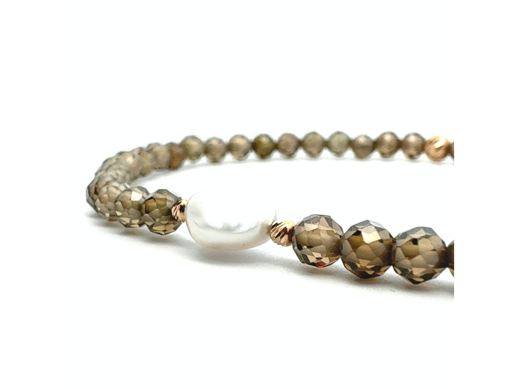 Náramek - zirkony, perla Jižních moří a zlato Dárková krabička a certifikát pravosti kamenů zdarma