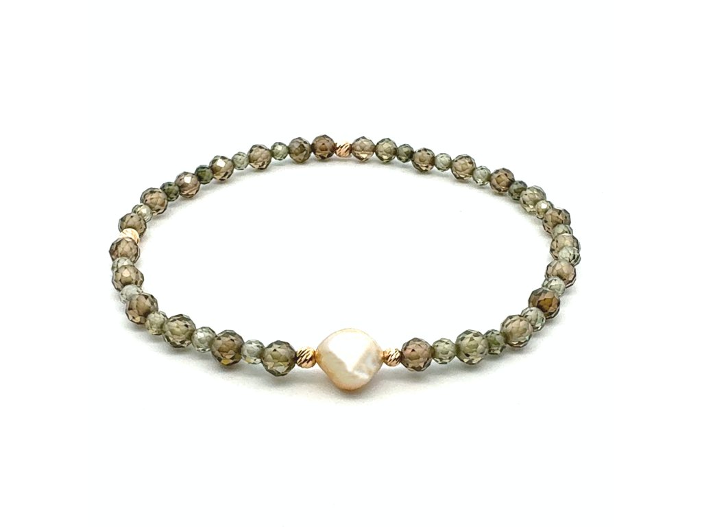 Náramek - zirkony, perla Jižních moří a zlato Dárková krabička a certifikát pravosti kamenů zdarma