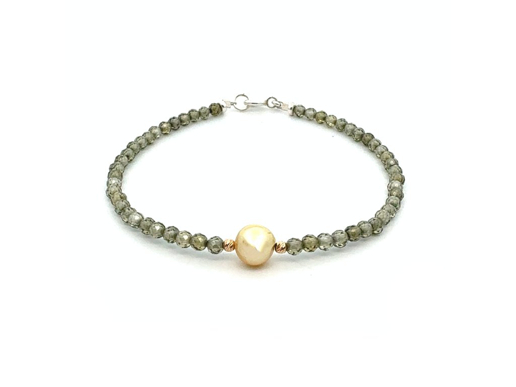 Náramek - zirkony, perla Jižních moří a zlato Dárková krabička a certifikát pravosti kamenů zdarma