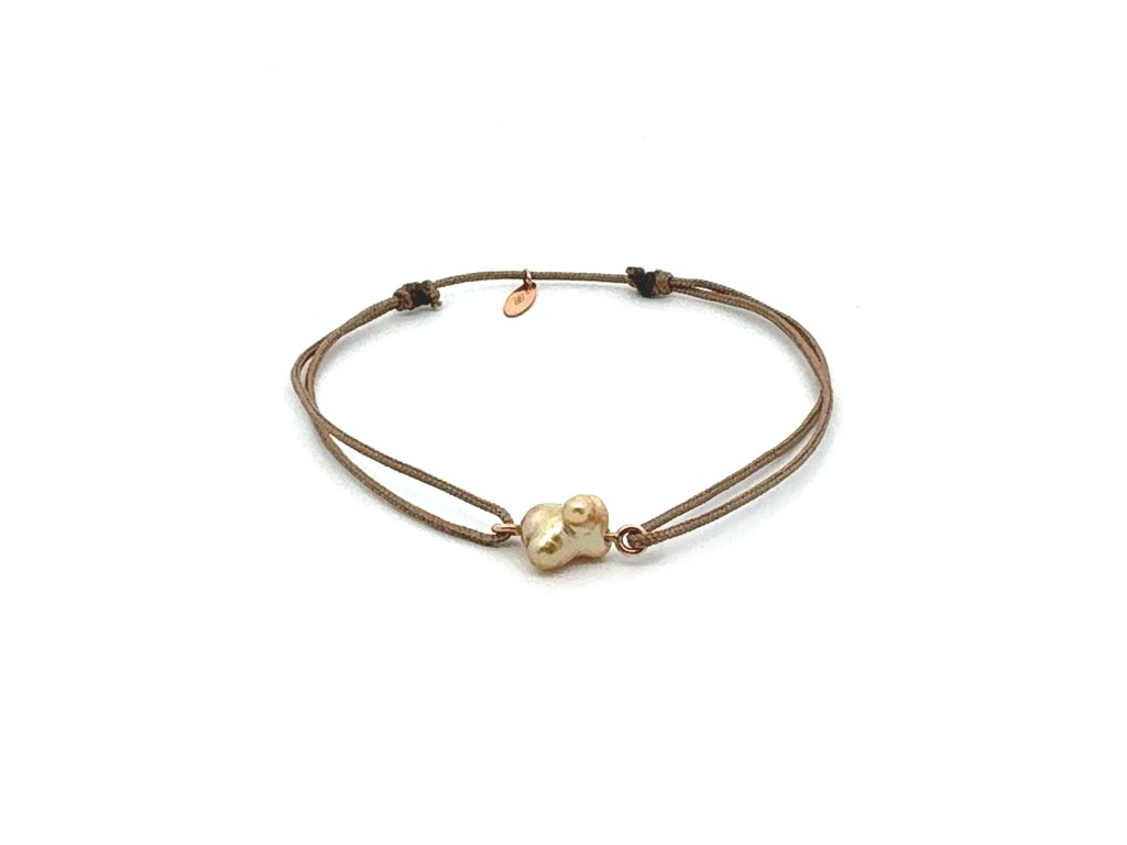 Uprostřed tohoto náramku se nachází nepravidelně tvarovaná zlatá keshi perla z moří u Filipín, které jsou v Evropě velkou vzácností. Právě jejích zlatá barva je tou výjimečnosti, která je vlastní pouze perlám z Filipín. Barva zlata - kouzlo, které vytvořila příroda.