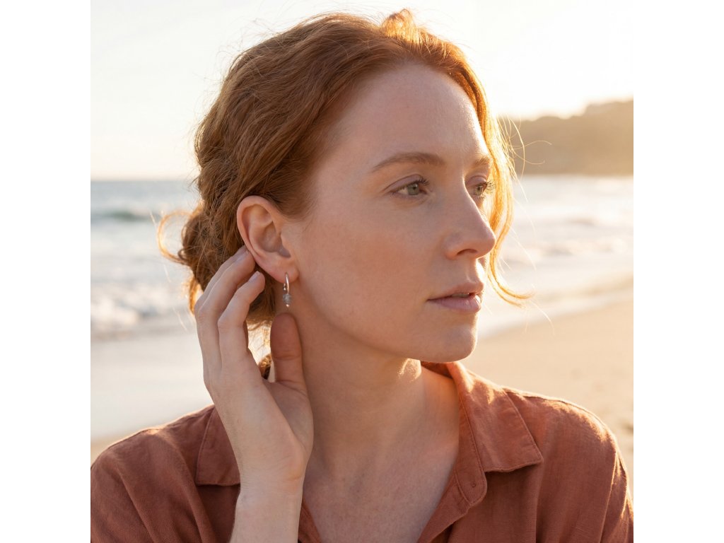 Tyto náušnice nejsou určeny k tomu, aby okamžitě přitáhly pozornost. Zaujmou až ve chvíli, kdy se na ně někdo opravdu podívá. Při pohybu hlavy zachytí drobný odlesk, odhalí strukturu kamene a pocit autenticity - něco opravdového, ne uměle vytvořeného. Jejich třpyt je přirozený, hluboký a proměnlivý. Vyniká v lomových plochách kamene a projeví se chvíli, kdy se setká se světlem - třeba jen letmým slunečním paprskem.