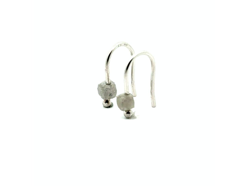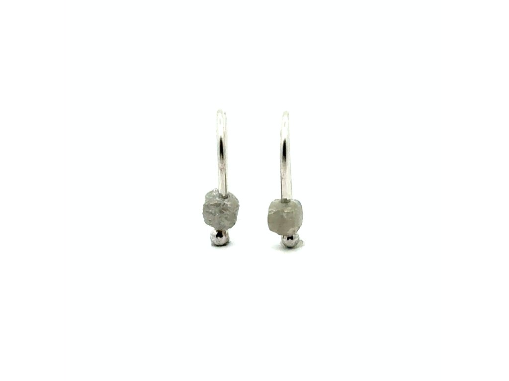 Náušnice z bílého zlata s šedým raw diamantem - přirozená krása v jemném třpytu