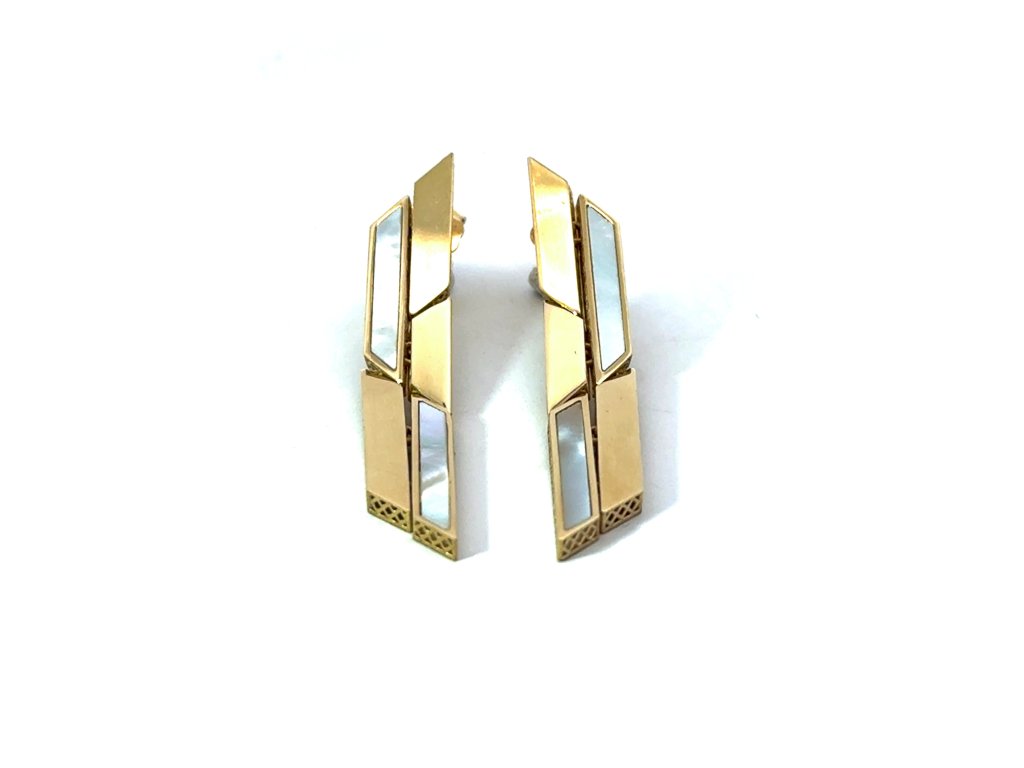 Náušnice BOVO ze žlutého zlata s perletí Dárková krabička zdarma
