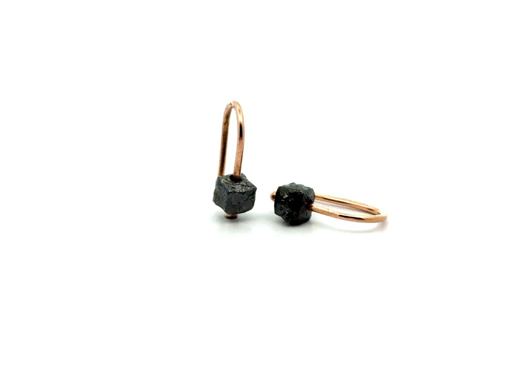 Růžové zlato dodává diamantům hřejivost a elegantní luxus. Svou barvou vytváří s černými diamanty výrazný, ale stále něžný kontrast, díky kterému kameny krásně vyniknout. Diamanty byly ručně zasazeny do zlata tak, aby vynikla jejich přirozená struktura a originalita. Každý diamanty je originál s vlastním charakterem a jedinečným výrazem, který nelze napodobit. Jednoduchý háček ponechává kamen volnost a lehký pohyb, díky kterému se náušnice při nošení jemně třpytí a působí živě.