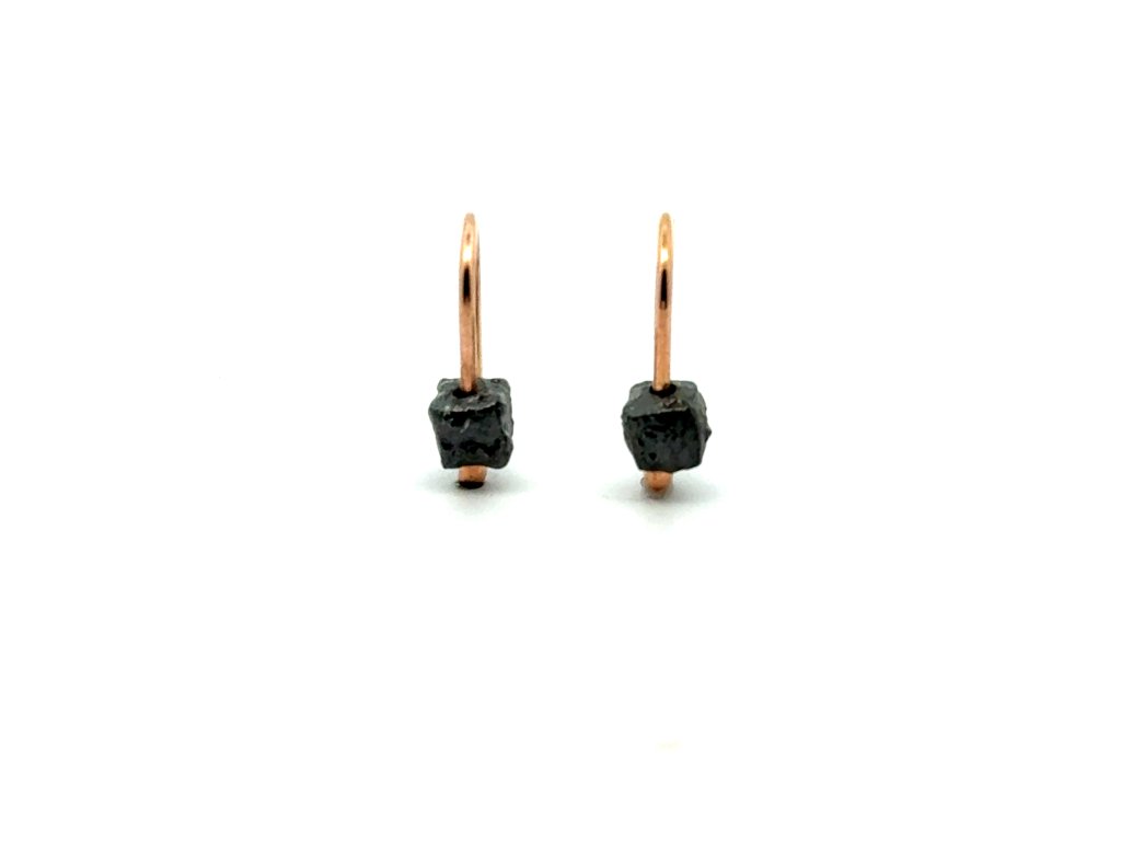 Náušnice z růžového zlata s černými raw diamanty - něžný třpyt v přirozenosti