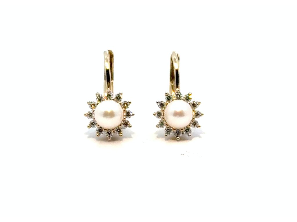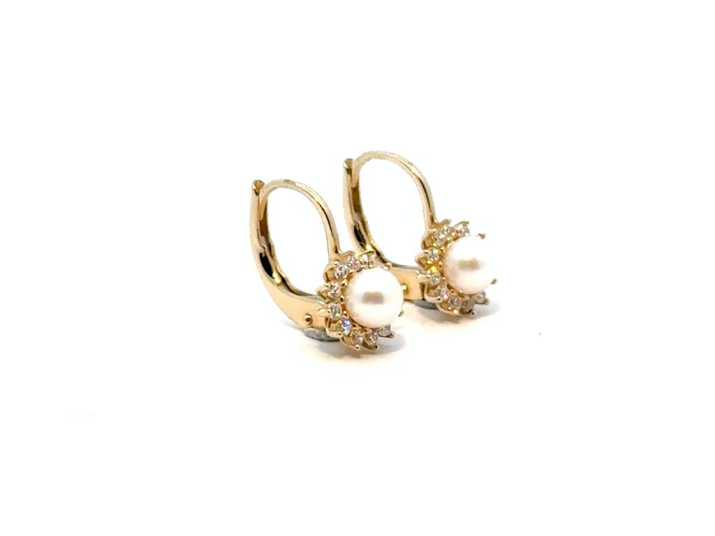 Náušnice s perlou a zirkony ve žlutém zlatě Dárková krabička i certifikát o pravosti perly zdarma