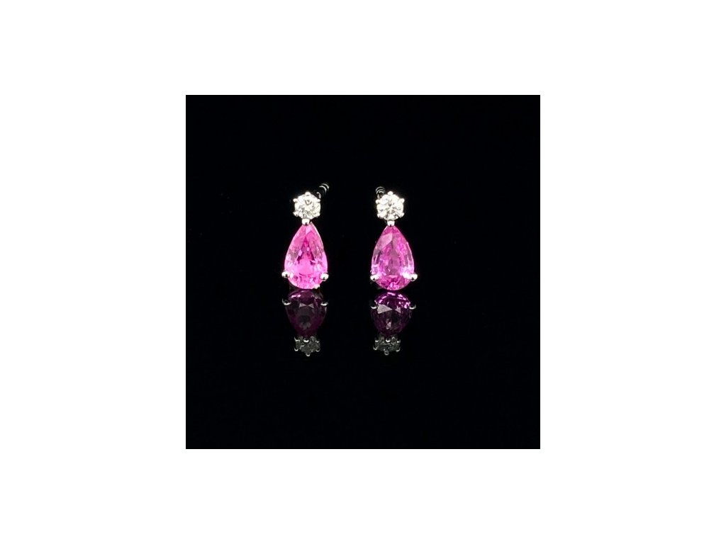 Náušnice z bílého zlata s růžovým safírem a briliantem Certifikát pravosti briliantů a safírů a dárková krabička zdarma