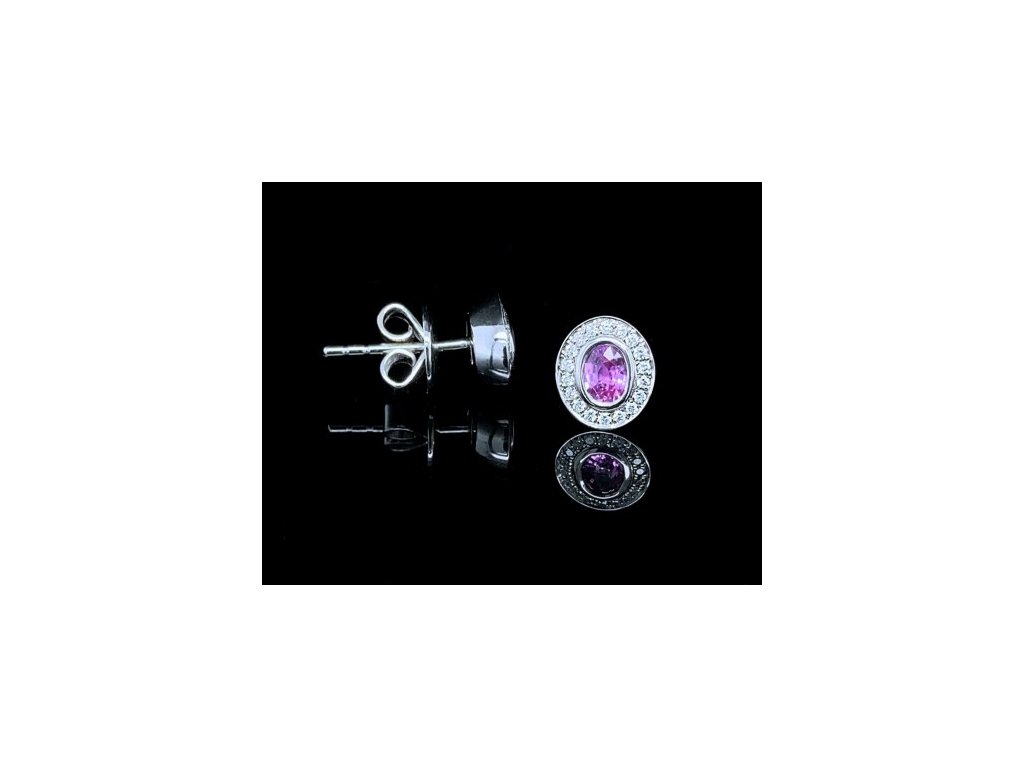 Briliantové náušnice s růžovým safírem v bílém zlatě Certifikát pravosti briliantů a safírů a dárková krabička zdarma
