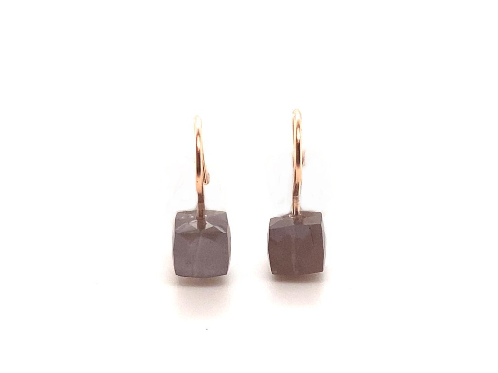 Náušnice z růžového zlata s měsíčním kamenem Dárková krabička a certifikát pravosti kamene zdarma