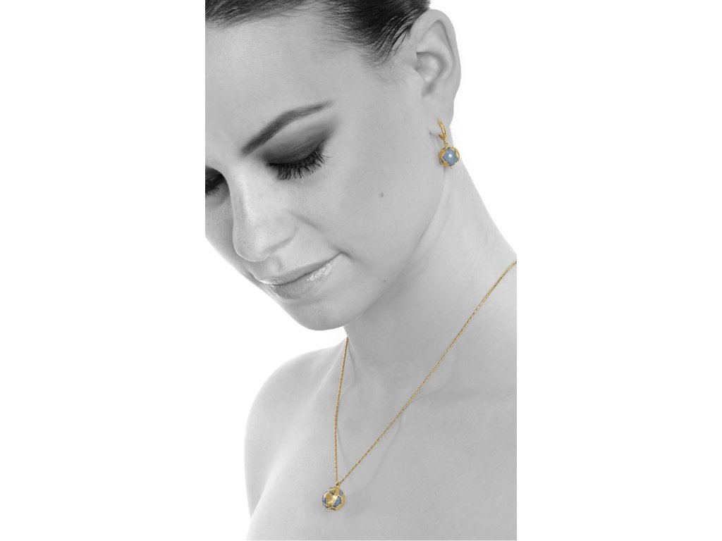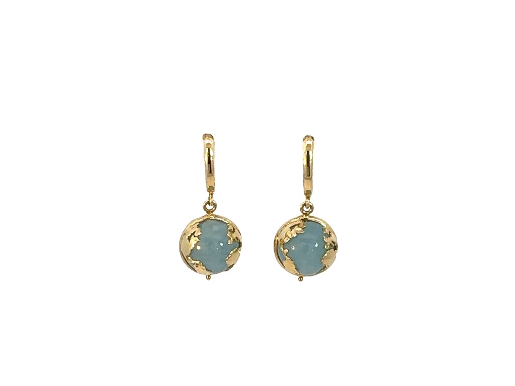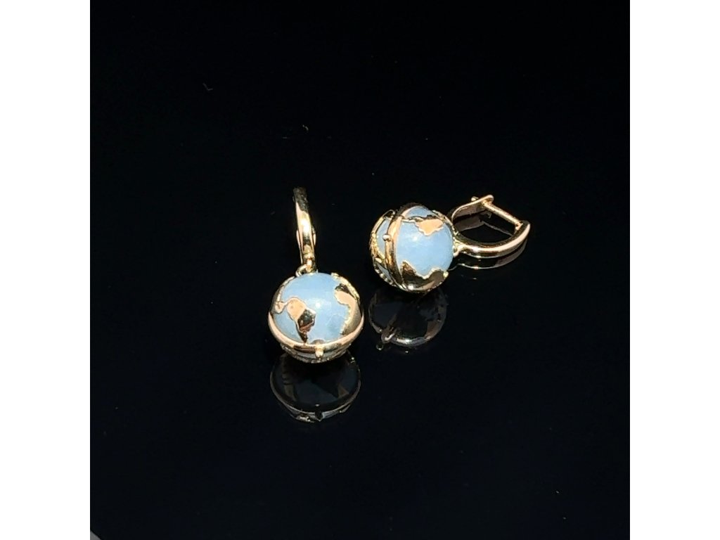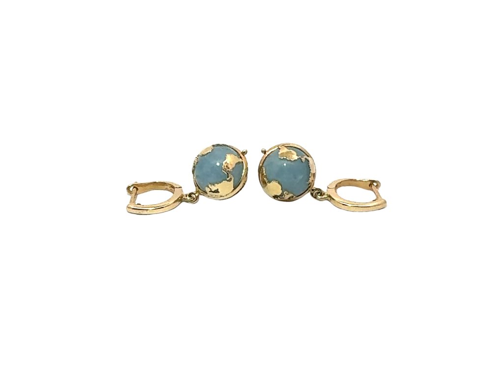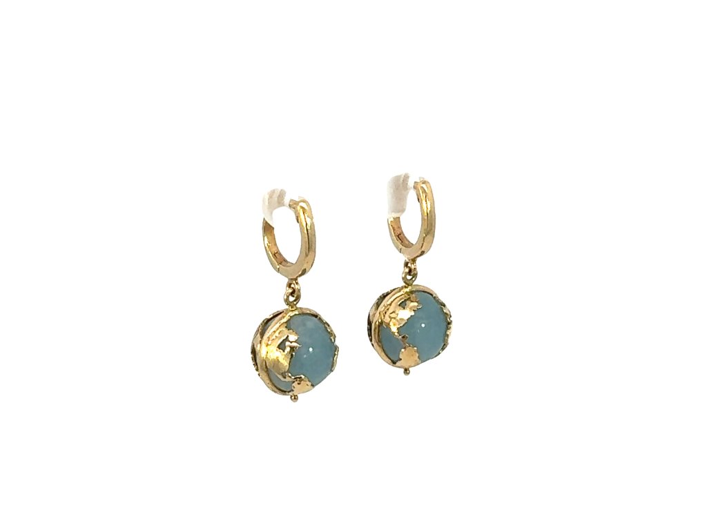 Náušnice s aquamarinem ve žlutém zlatě ve tvaru planety, originál ruční práce Dárková krabička i certifikát o pravosti aquamarinu zdarma