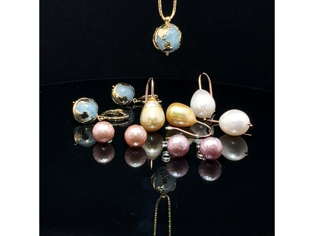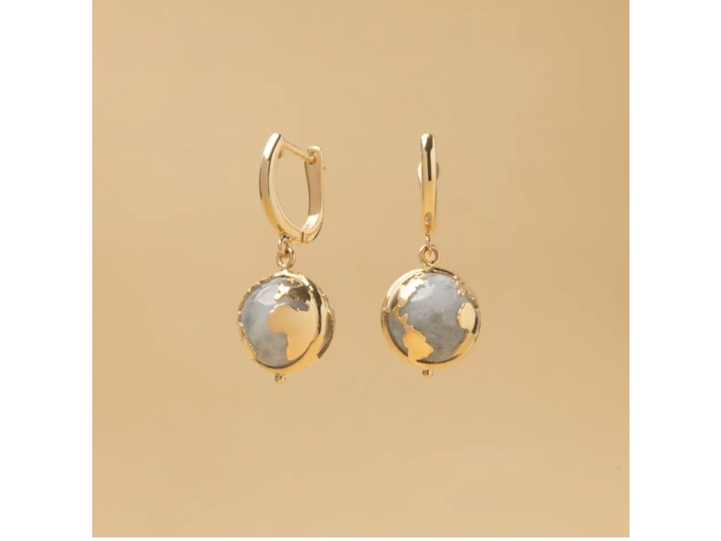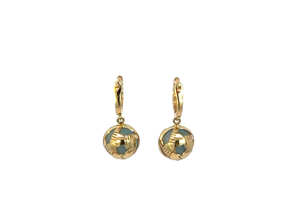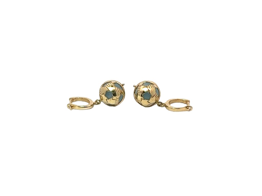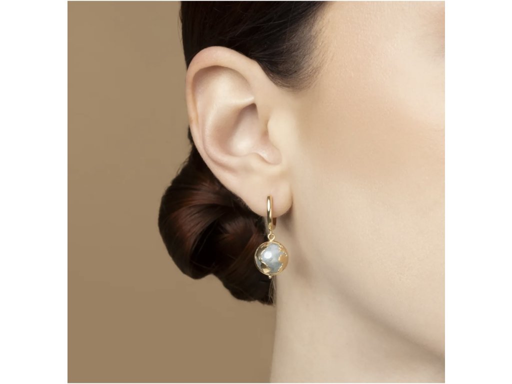 Náušnice s aquamarinem ve žlutém zlatě ve tvaru planety, originál ruční práce Dárková krabička i certifikát o pravosti aquamarinu zdarma