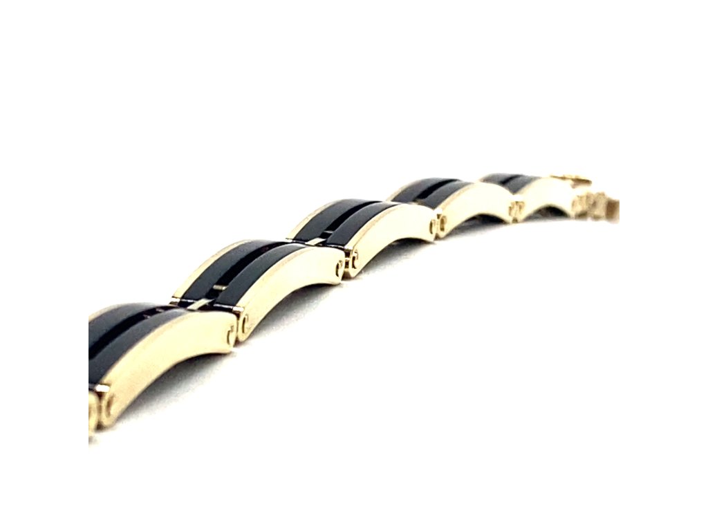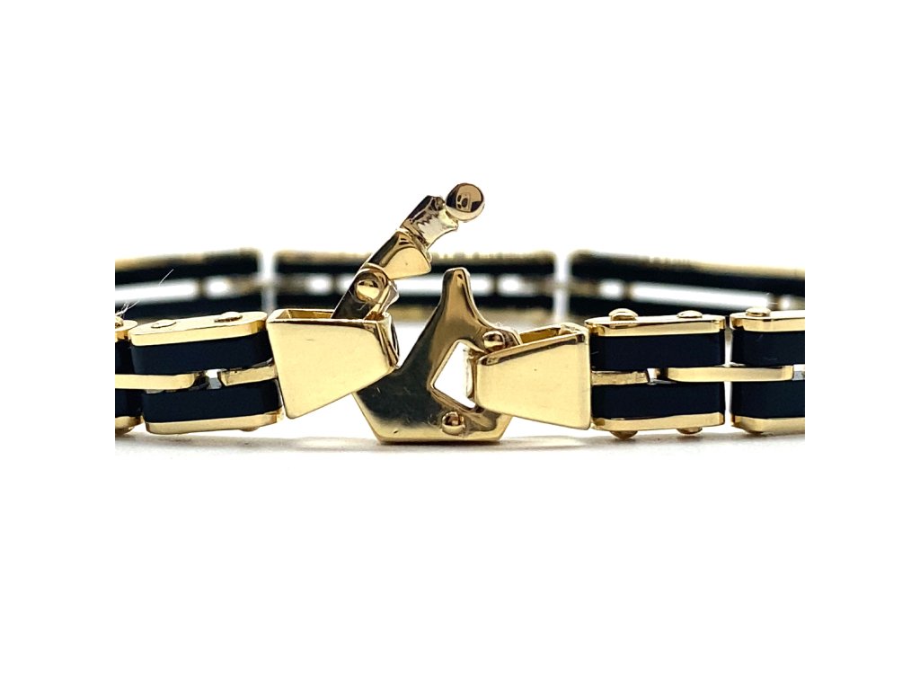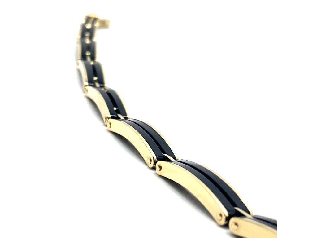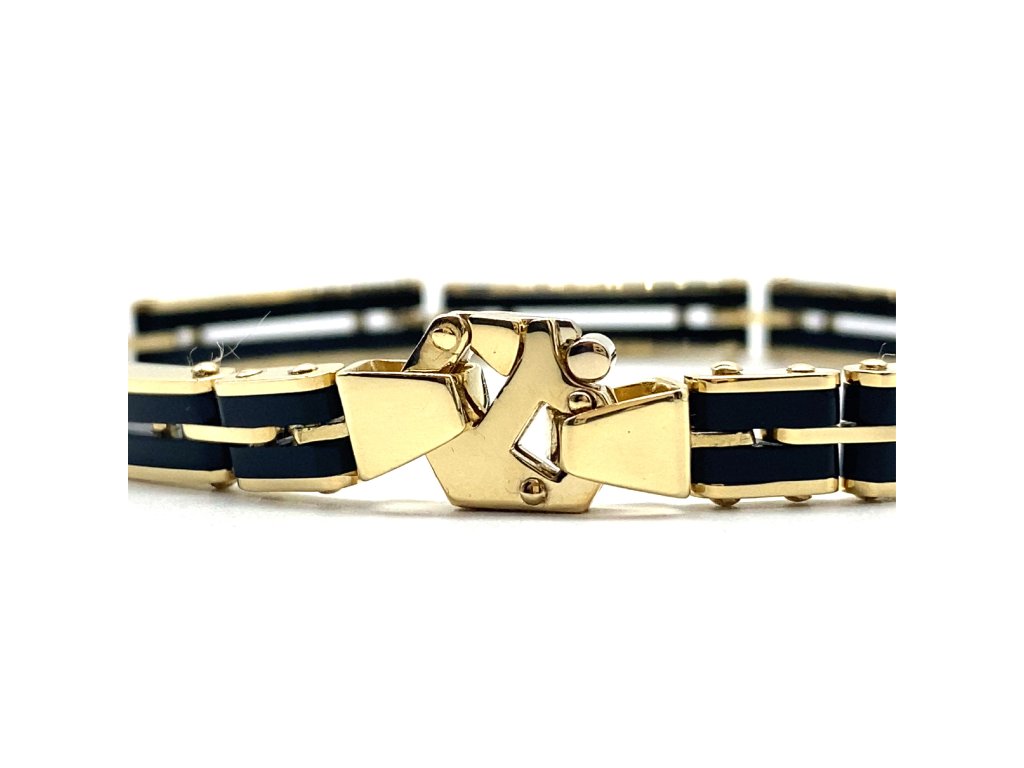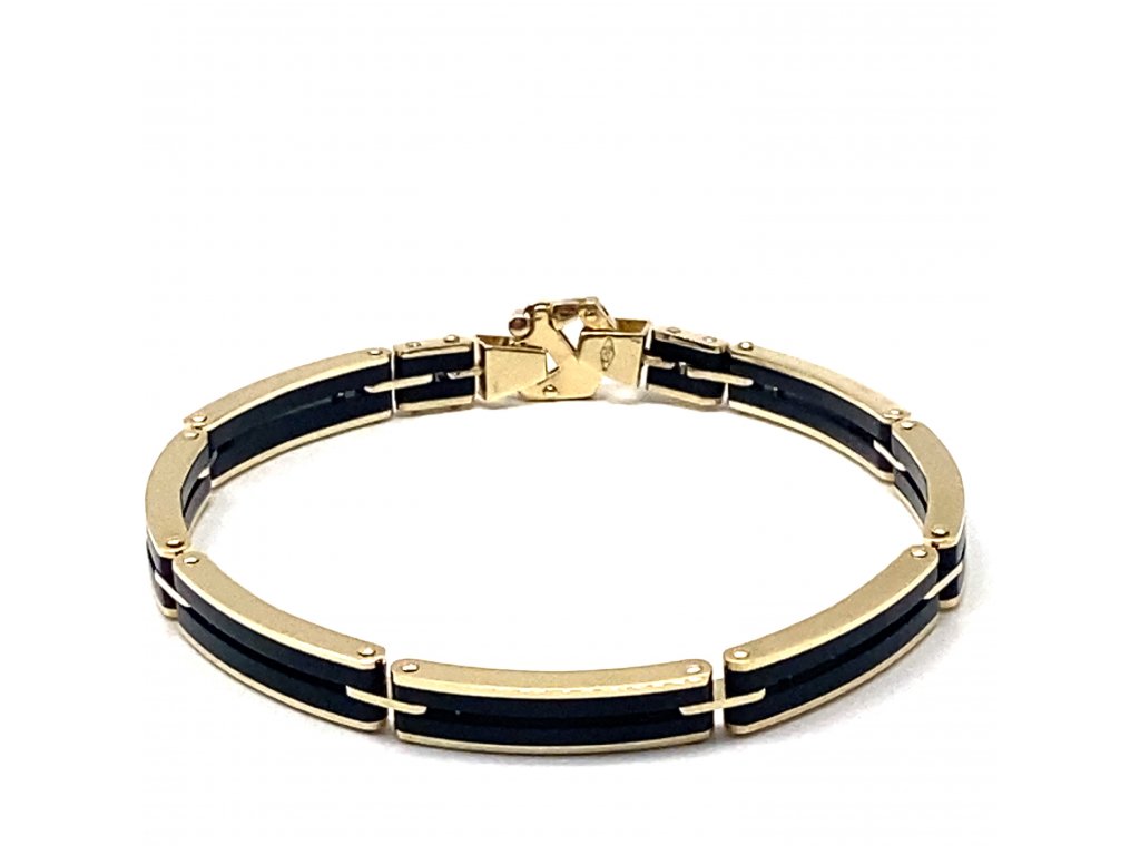 Pánský náramek žluté zlato černý porcelán Dárková krabička zdarma