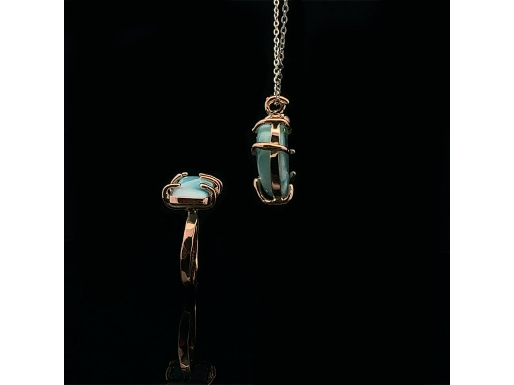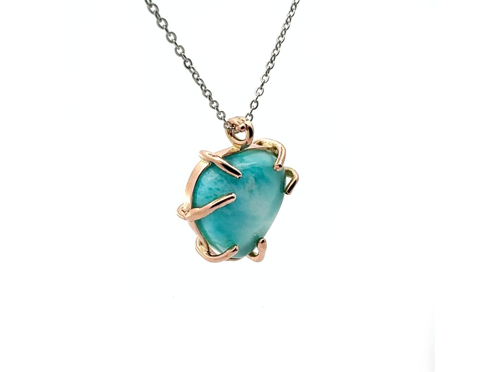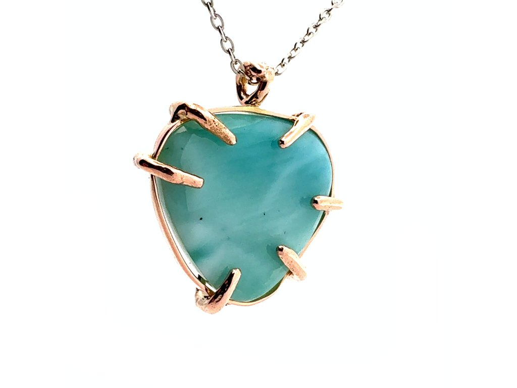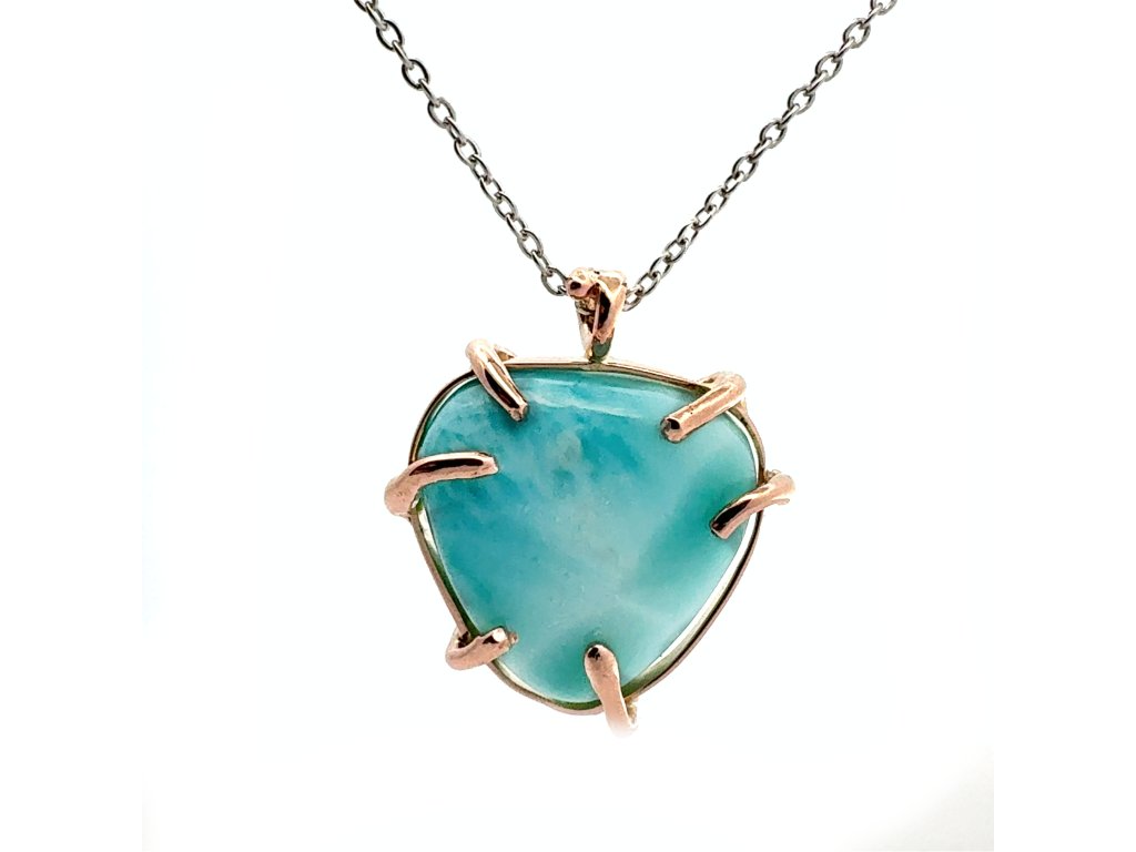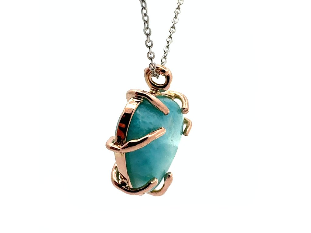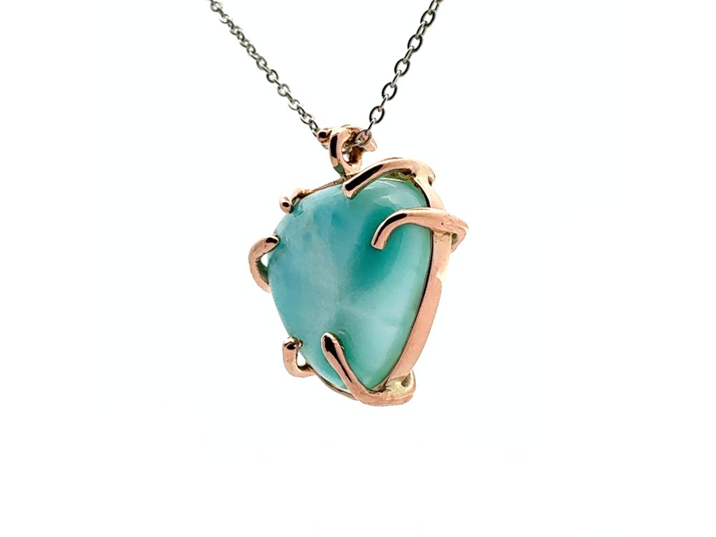 Přívěsek larimar v růžovém zlatě na řetízku z bílého zlata Dárková krabička a certifikát o pravosti larimaru zdarma
