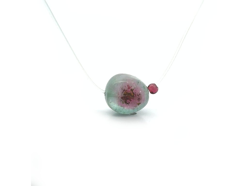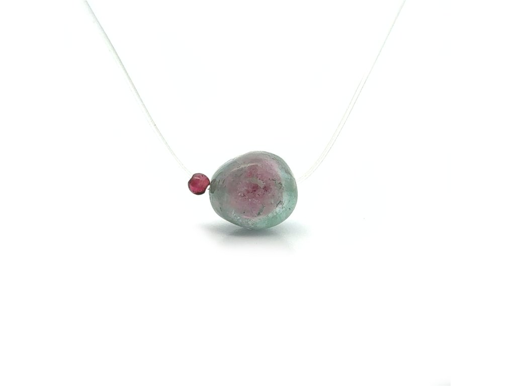 Melounový turmalín pochází z afgánského Nuristánu a je vyhledáván pro svou vzácnost a výjimečnou energii. Symbolizuje radost, srdečnost, lásku a rovnováhu. Spojuje něhu růžové a klid zelené - dvě polarity, které se navzájem posilují.