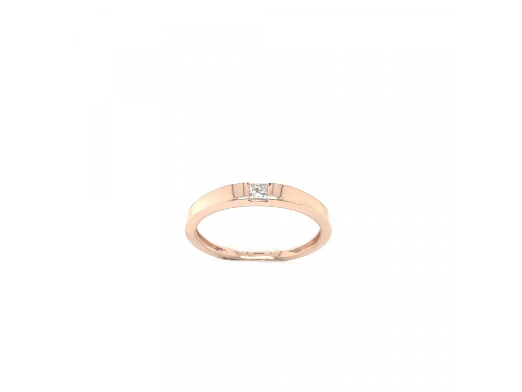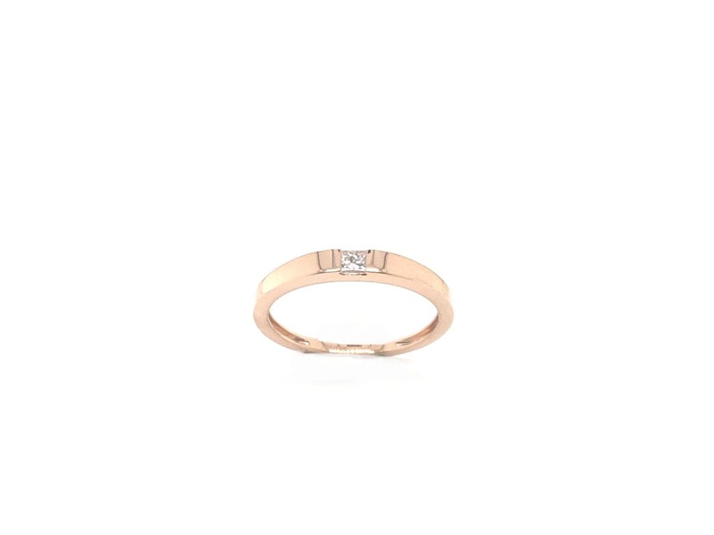 Prsten z růžového zlata s briliantem do čtverečku Dárková krabička a certifikát pravosti briliantu zdarma
