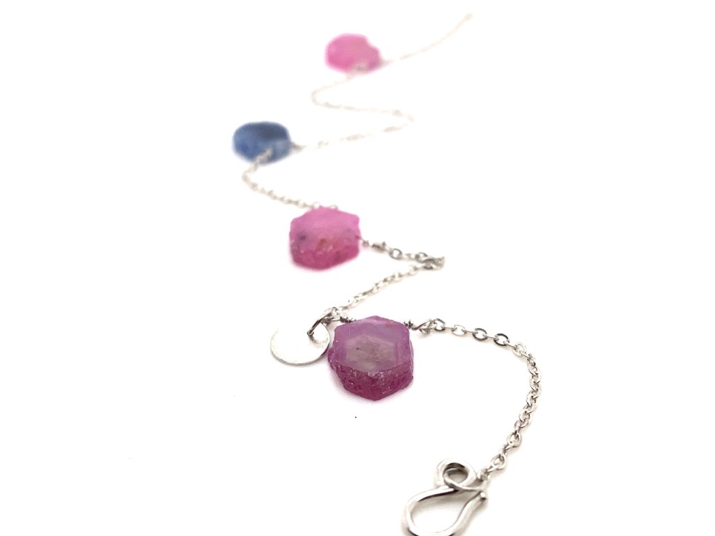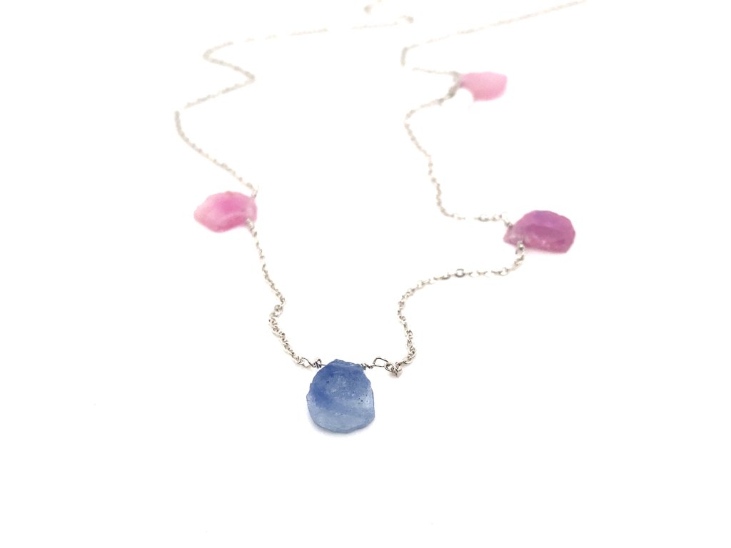Surové RAW safíry na řetízku z bílého zlata Dárková krabička i certifikát o pravosti surových safírů zdarma