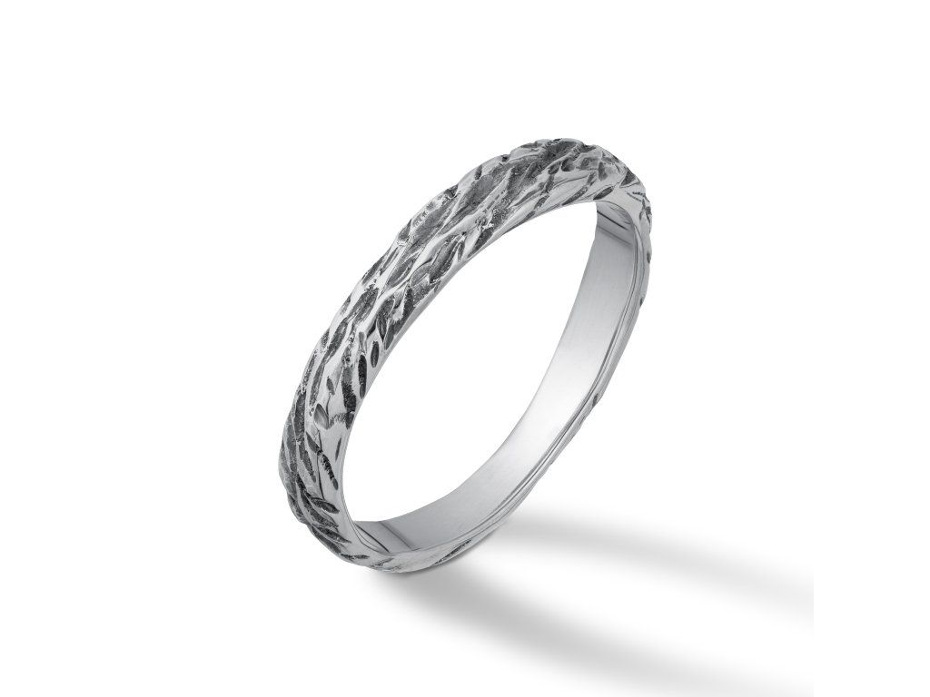 Struktura povrchu dokonale zachycuje hru světla a stínu. Právě tyto nepravidelné detaily dávají prstenu dojem něčeho živého - jako když se dva lidé navzájem doplňují, rostou spolu a s časem jejich vztah získává vlastní linii, jedinečný rytmus a pevnost.